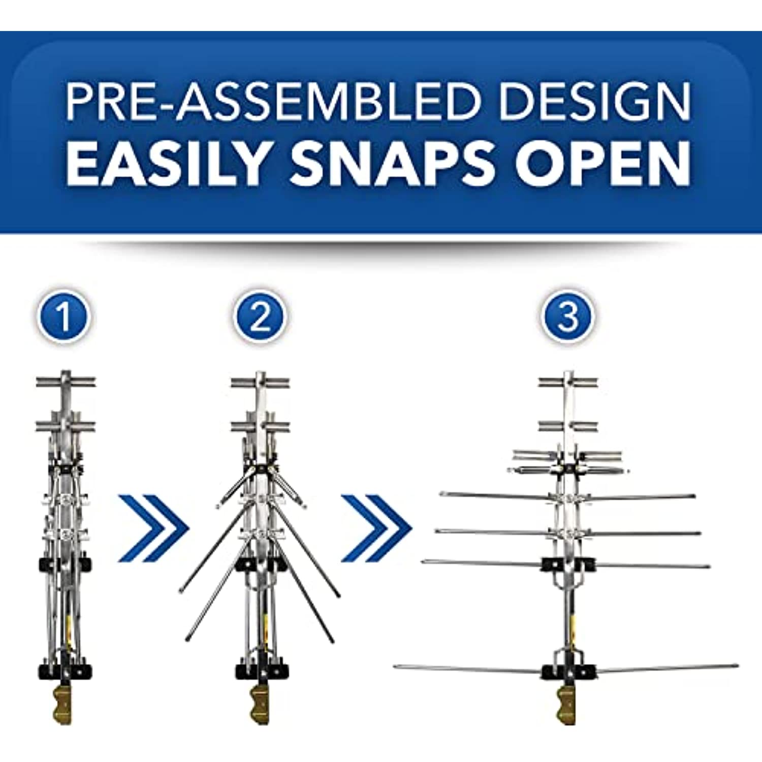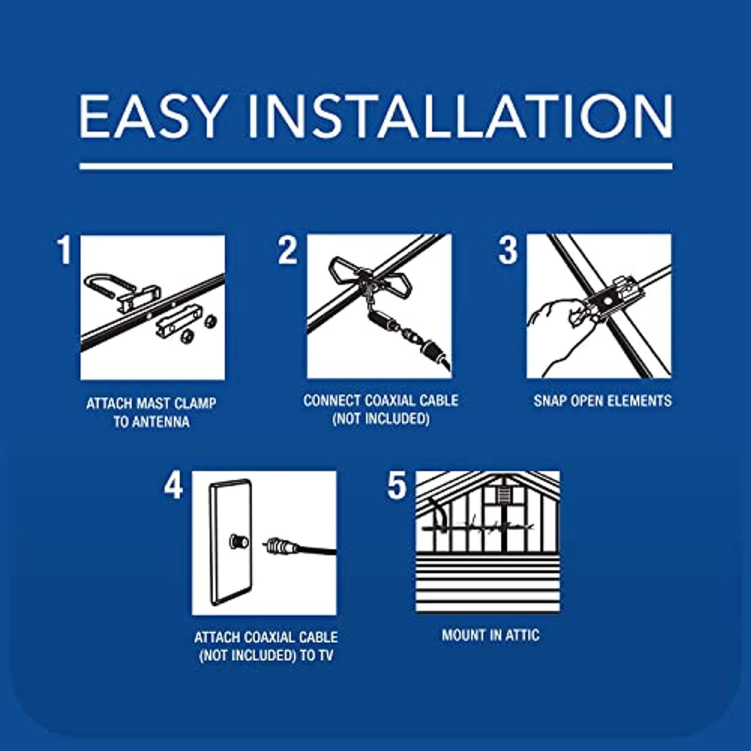 Enjoy HDTV network programming and your favorite shows for Free with the new RCA Compact Outdoor/Attic HDTV Antenna. Made with durable construction, this can withstand severe outdoor conditions, outperforming many larger outdoor antennas. This Antenna receives TV broadcasts including 8K, 4K, and standard HD formats for highest quality picture and sound. And don’t worry about the hardship of setting this up with the Easy-to-assemble design (no tools required). This Antenna Includes mast, locking mast clamp and mounting hardware, and is a very dependable backup television source when storms knock out cable or satellite television.