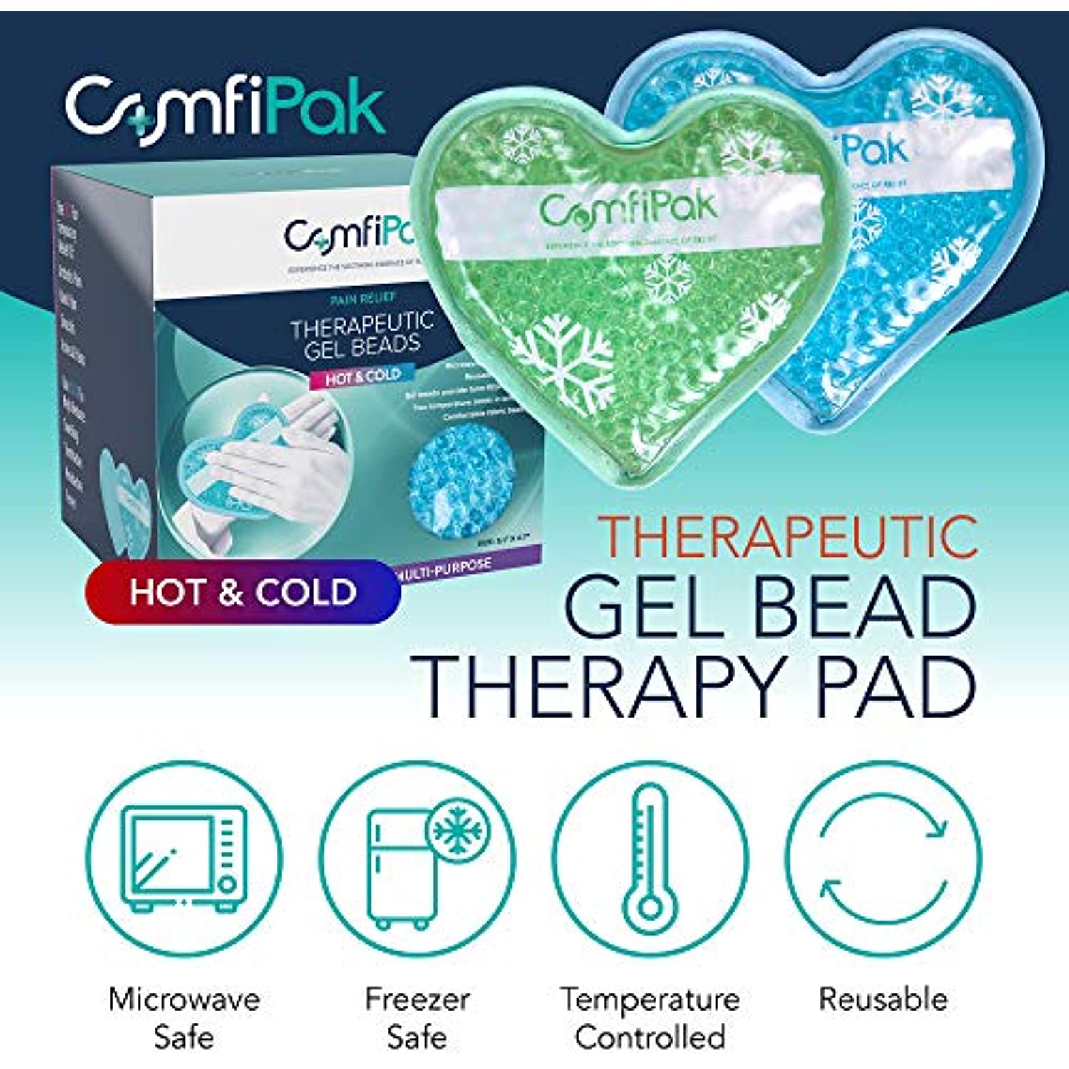 ComfiPak combines the healing power of hot & cold therapy into one convenient pack. Enjoy extraordinary relief from your everyday aches & pains and feel the optimal therapeutic benefit. The ComfiPak Hot & Cold Pack Pain Relief Pad conforms to all parts of the body including the back, knees, ankles and elbows. The beaded-based properties of Theramics enable you to easily mold the ComfiPak pad to any affected area for better pain relief. The flexible bead compound absorbs hot & cold temperatures, and then slowly releases hot or cold therapy over an extended period of time. It is safe and easy to use. Our radiant energy technology allows ComfiPak to heat evenly throughout without generating hot spots that can harm your skin. ⚠ WARNING: Use as directed to avoid possible injury. Test temperature by applying ComfiPak to sensitive skin, such as the underside of the wrist. Always test the ComfiPak pad inside its special cloth cover. If the ComfiPak wrap feels uncomfortable, remove for a few minutes and retest until comfortable. Do not use on infants. Pay special attention when using ComfiPak for young children and older persons whose skin may be less sensitive to temperature extremes. Persons with diabetes, circulatory problems, nerve damage, paralysis or insensitive skin should use only as directed by a physician. Consult your doctor before treating any serious injury or when pain persists. DO NOT USE IN CONJUNCTION WITH LINIMENTS, BALMS OR LOTIONS.