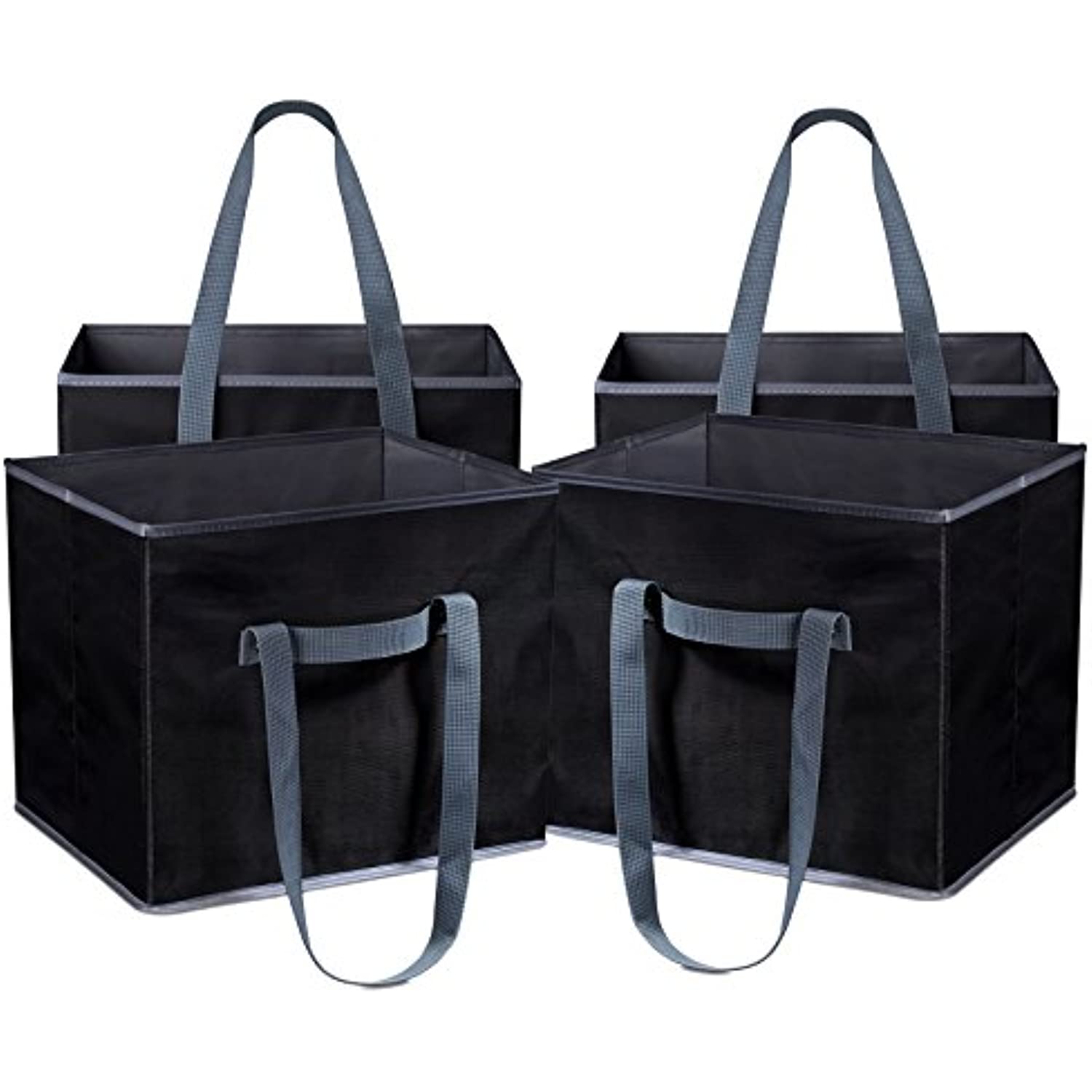 Reusable Shopping Cube Grocery Bag - These Sturdy Tote Bags will Keep your Car Trunk Groceries in Place. Long Handles to Carry in Hand or Over Shoulder. Folds Flat for Convenient Storage. (Set of 4)