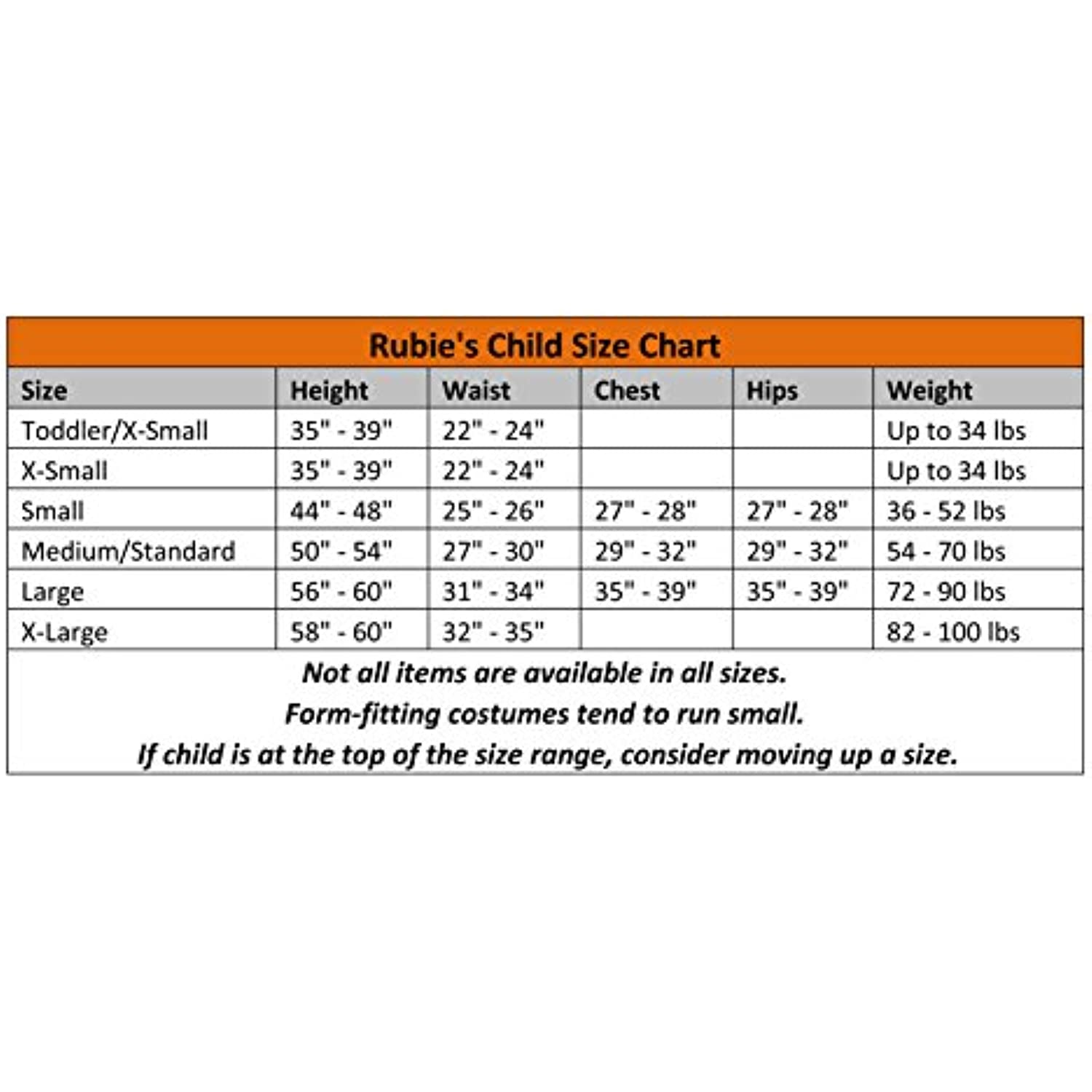 - Important: Costumes are sized differently than clothing, consult the Rubie's Child's size chart and recent reviews to make the best selection