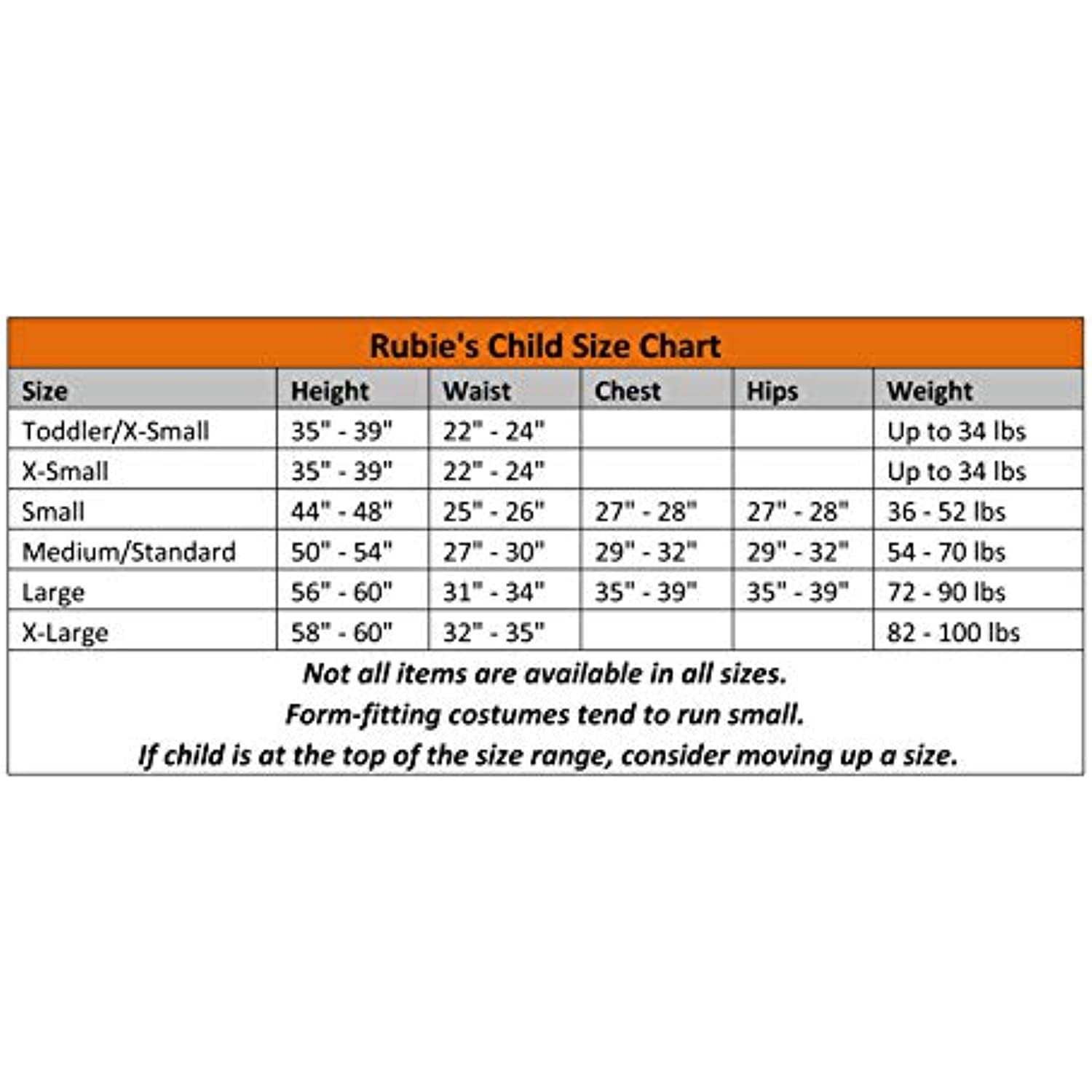 - Important: Costumes are sized differently than apparel, use the Rubie's Child Size Chart in images, reviews and Q & a to determine best fit, do not choose based on child's age or clothing size