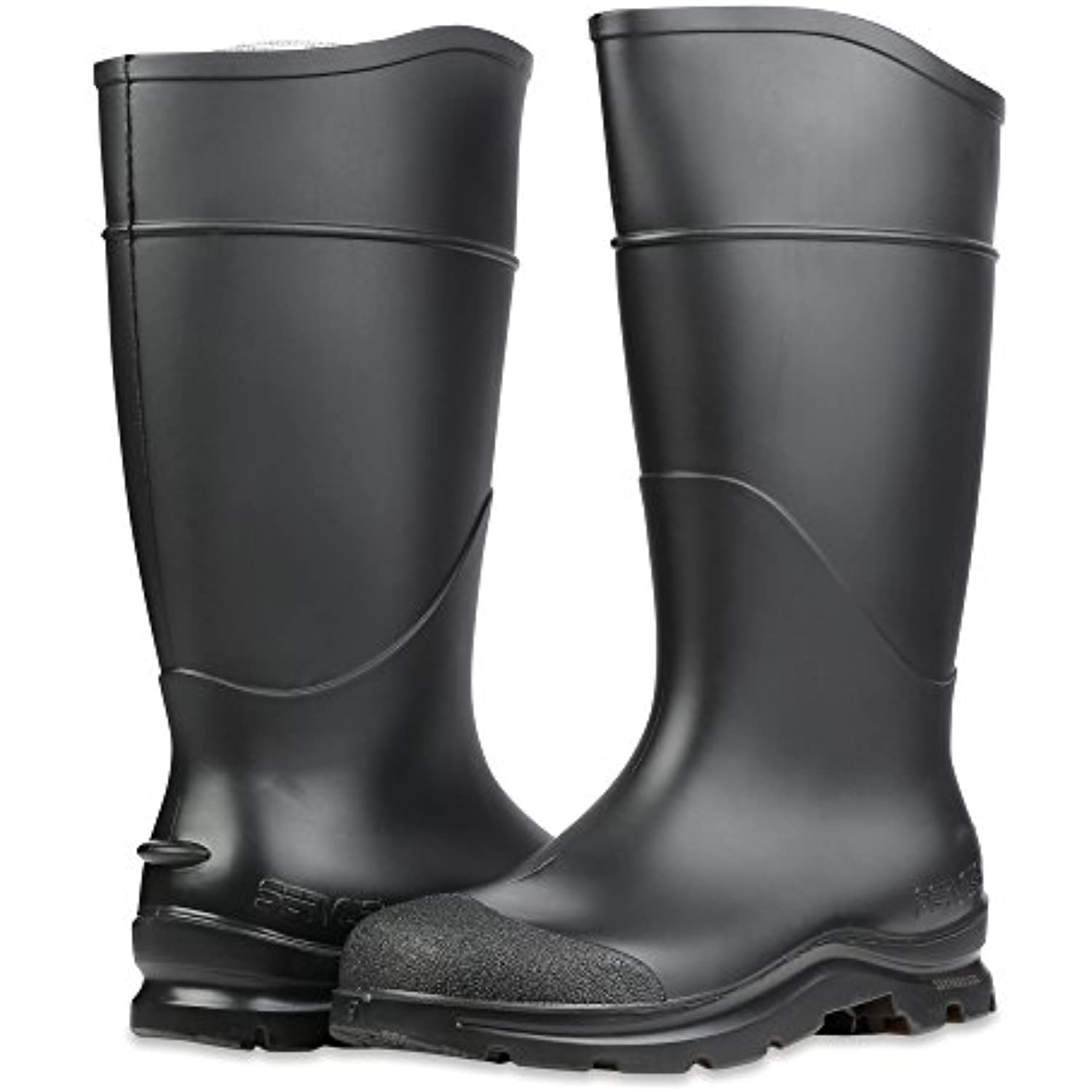 Value-priced without compromising on comfort, these Servus Comfort Technology 14" PVC Soft Toe Men's Work Boots have a flexible upper and scalloped top edge that bends with your movements. This reduces rubbing and helps prevent skin irritation. These injection-molded PVC boots are seamless and 100% waterproof, keeping your feet dry and protected from harsh chemicals and fertilizers found on the job. A cushioned contoured insole provides additional walking comfort, while the durable construction is reinforced at critical stress points for longer lasting wear. Deep angle cleats on the outsole of these men's work boots provide solid traction on slippery surfaces, and a contoured heel cup reduces heel slippage.