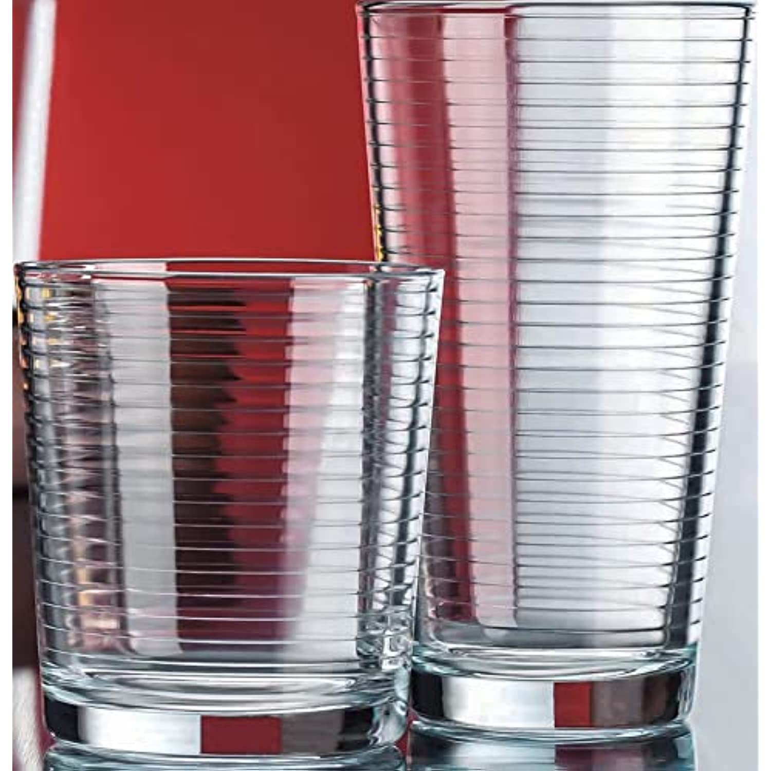 THIS 12-PIECE GLASS DRINKWARE SET LETS YOU ENJOY A DELICIOUS BEVERAGE WITH A SENSE OF STYLE! RIBBED DRINKWARE SET:Each of these quality glass cups has an embossed ribbed interior which refracts light and gives any beverage a more upscale feel. This glass set is perfect for any drinks – Water, juice, wine, and martinis EVERYDAY DURABLE DRINKING GLASSES: This 12-piece glass drinkware set lets you enjoy a delicious beverage with a sense of style and will add a stylish touch to your table setting HYGIENIC PREMIUM MATERIAL: This durable 100% Lead-free glass material is a safer and better alternative to plastic. Made from blown recycled glass, Innovative glass-making techniques produce perfectly smooth rims and edges DURABLE AND STACKABLE: Features a durable heavy base for extra stability and designed to last through clinks, splashes weighted and spills. Drink glasses are stackable for convenience and space saving storage DISHWASHER SAFE | EASY CLEANING: Glasswares drinking set includes six 17 oz. coolers and six 13 oz. DOF glasses that have been temper treated for maximum durability. Earn yourself a little more leisure time with these dishwasher safe water glasses MAKES AN EXQUISITE GIFT: This set of 12 heavy base glasses will make an exquisite and memorable gift for weddings, engagement, birthday, Christmas, housewarming parties or just to gift a loved one with a stunning set of barwareFEATURES