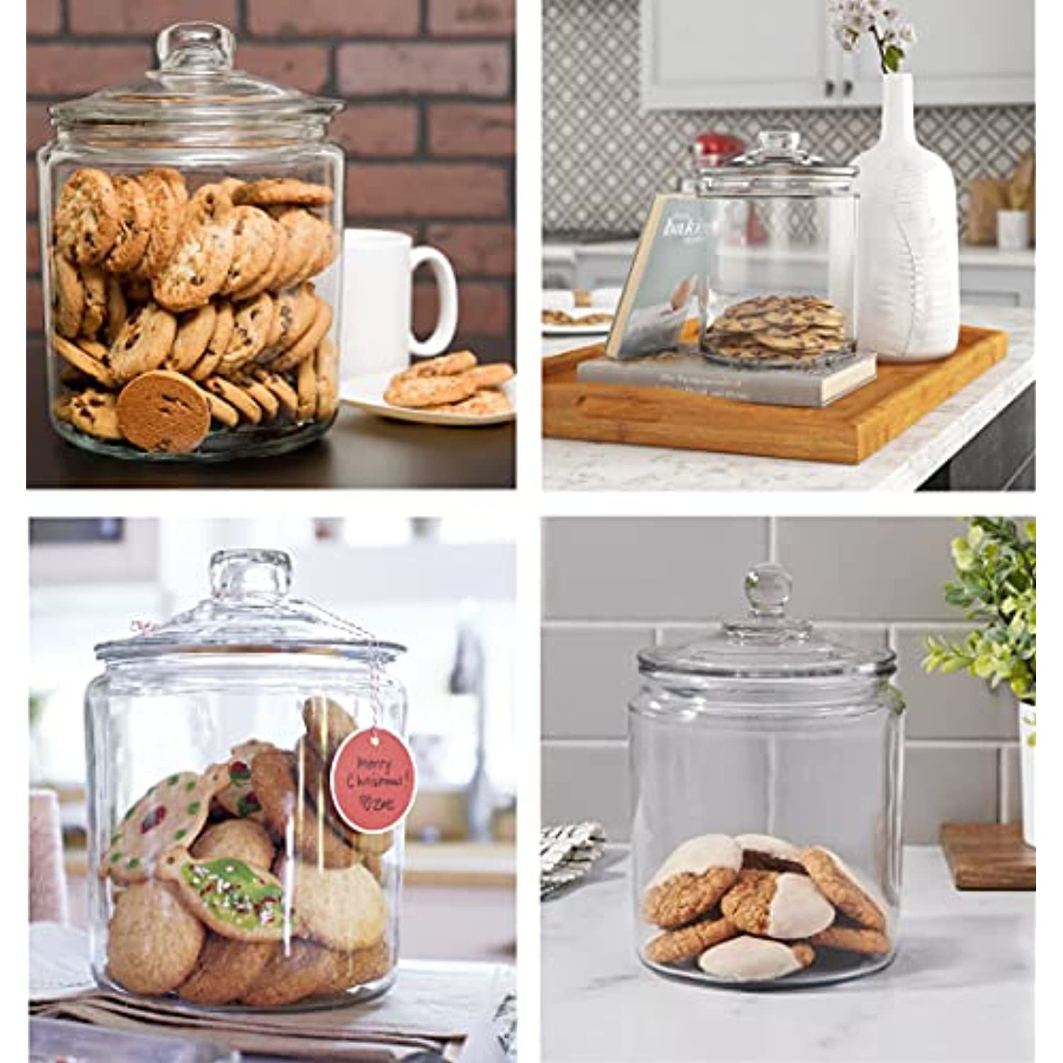 - SEE YOUR CONTENTS - See-through glass jars makes it easy to view contents at a glance. Great for storing cookies, sugar, flour, spices, cookies, and other kitchen staples.