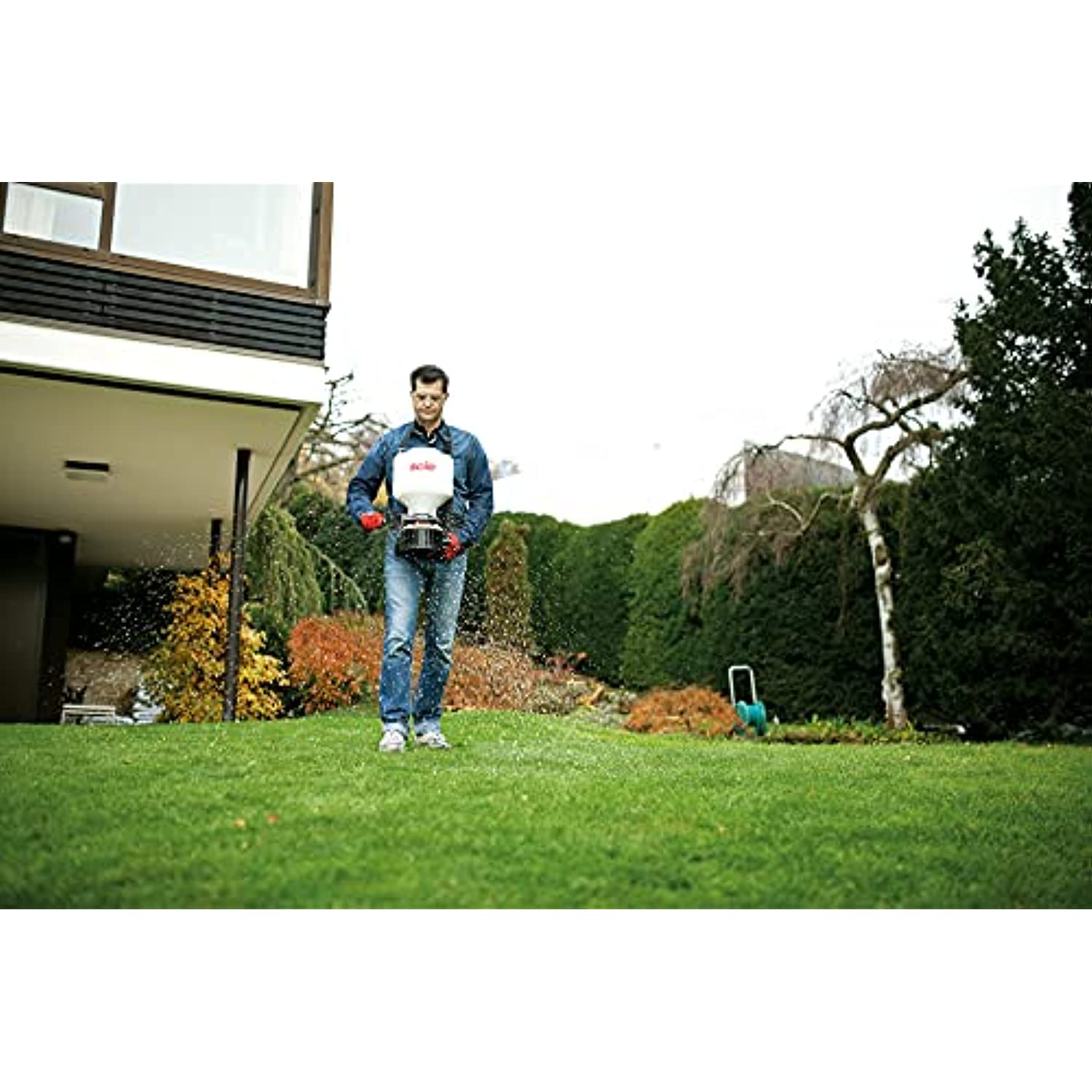 Product Description Solo 421 Portable Spreader. Designed for spreading a variety of granular materials over irregular terrain, this chest-mounted, extremely portable precision spreader is perfect for use in decorative beds with fertilizers and insecticides. Ideal for lawn maintenance operators treating parking lot islands. Eliminates banging over curbs with cumbersome wheeled units. The Solo 421 is also effective spreading ice melt, oil absorbents, seeds and a variety of granular products. From the Manufacturer Agitator allows material to drop onto impeller evenly, improving uniformity of spread and eliminating blockages. Adjustable for drop rate and direction. Fully enclosed gear box with lubricated metal gears assure long life and durability. Padded strap with comfortable, cross-shoulder design. 6-inch opening with screw-on cap. Hopper stands upright whether empty or full.