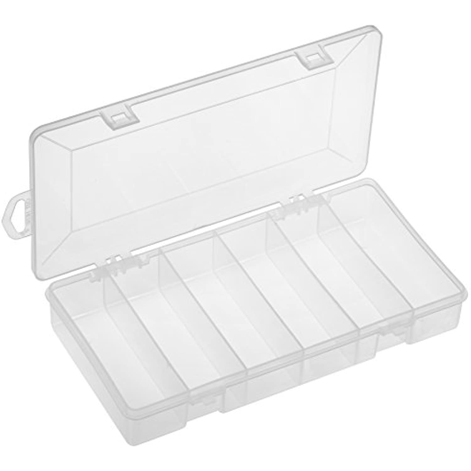 Translucent multi-compartment fishing and all-purpose utility boxes feature latching covers to keep contents from spilling. Waterproof polypropylene case resists oil, gas and common chemicals. Adjustable compartments to easily accommodate your needs. Compartments: 6 Size: 8" x 4" x 1-1/4" Translucent, waterproof polypropylene case resists oil, gas and common chemicals Adjustable compartments Latching covers.