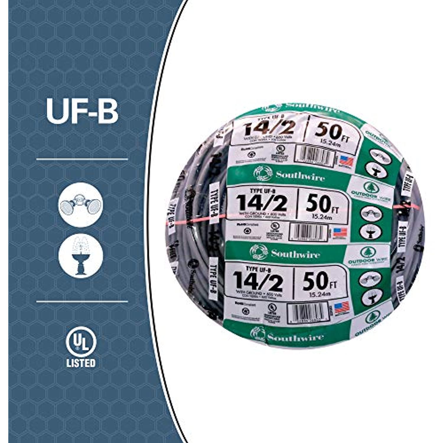 Southwire 13054222 14/2WG UF Wire 50-Foot