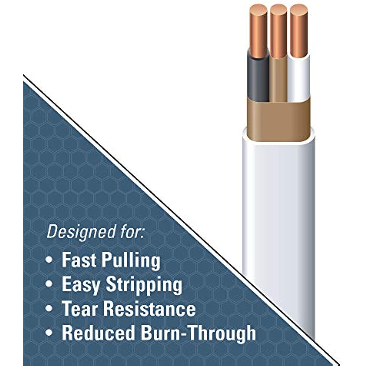 - 14 gauge, 2 conductors with ground, 250' per coil