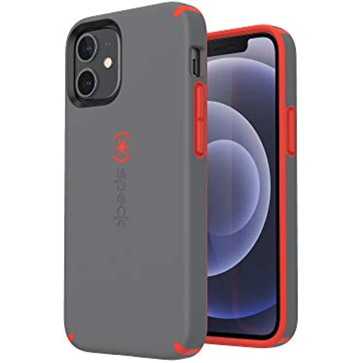 Speck Products CandyShell Pro iPhone 12 Mini Case, Moody Grey/Turbo Red (137593-9228)