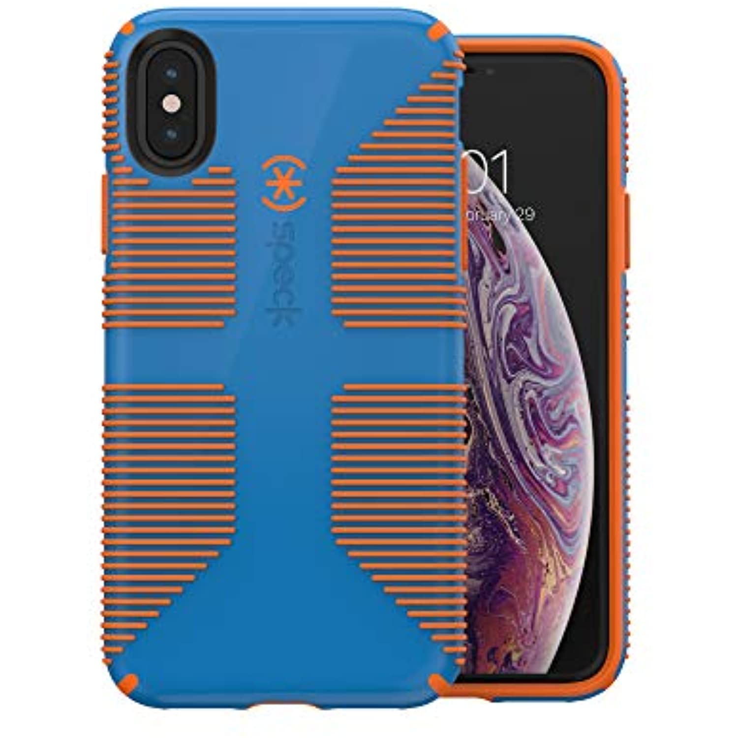 Speck Products iPhone Xs/iPhone X Case, CandyShell Grip, Skydive Blue/Pumpkin Orange