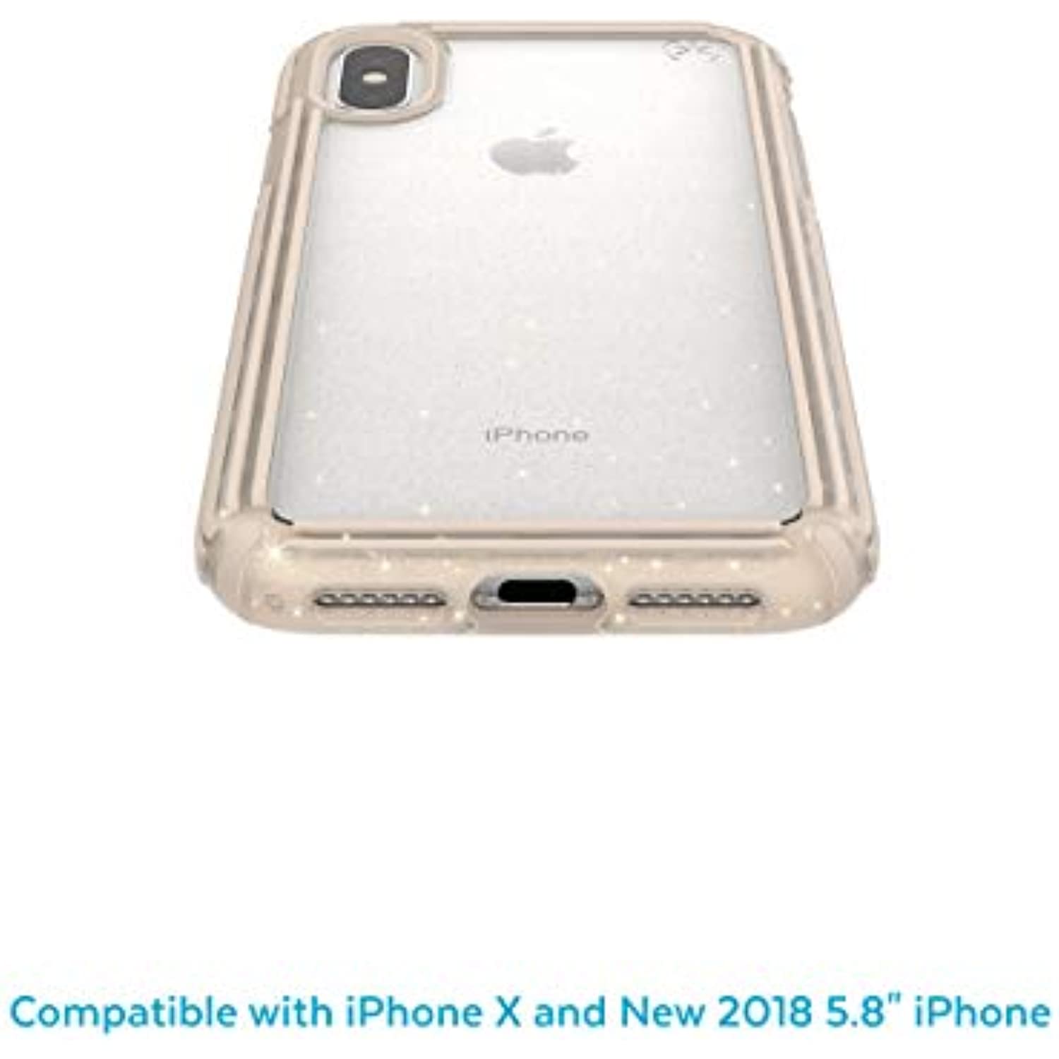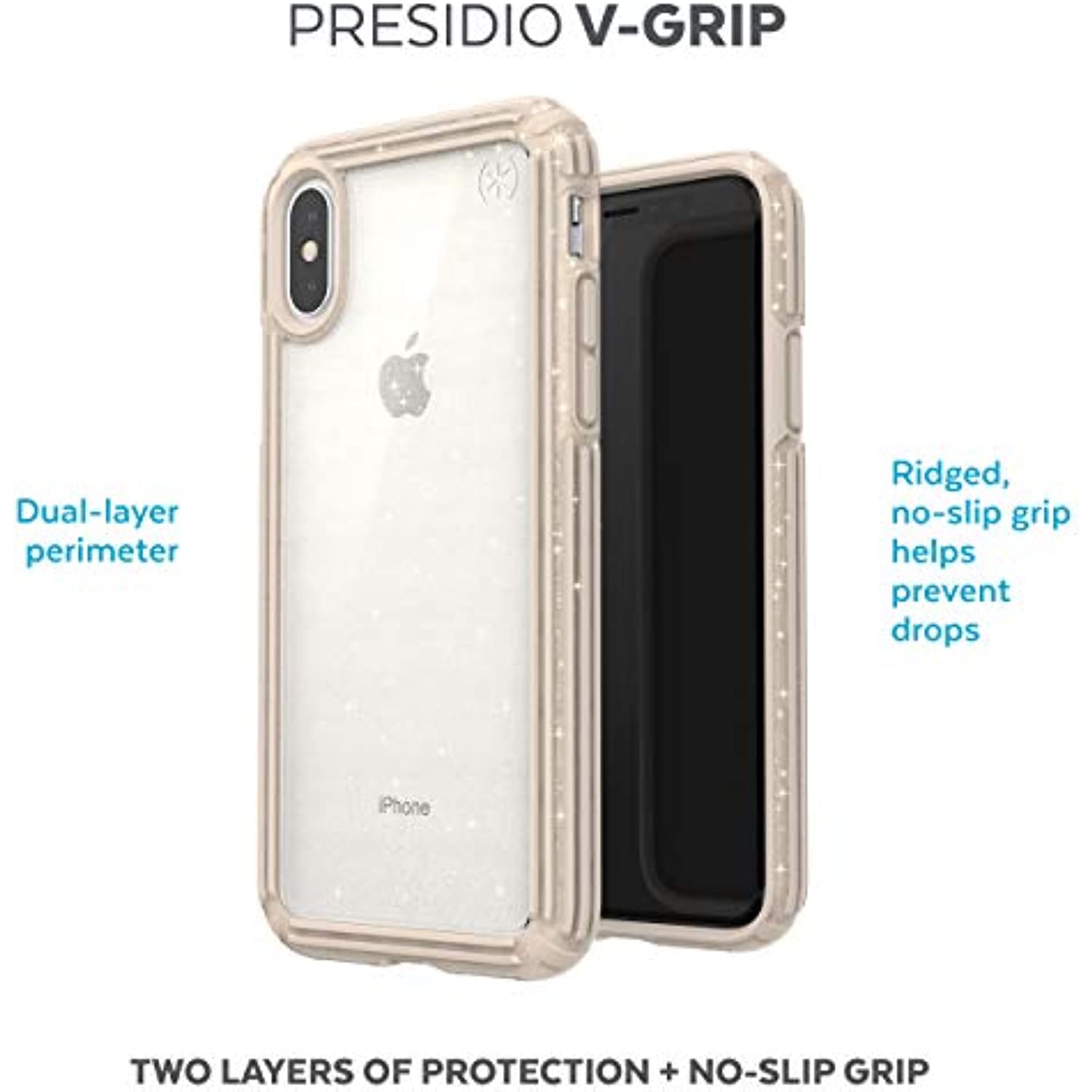 Speck Products iPresidio V-Grip iPhone Xs/iPhone X Case, Clear with Gold Glitter/Calfskin Brown