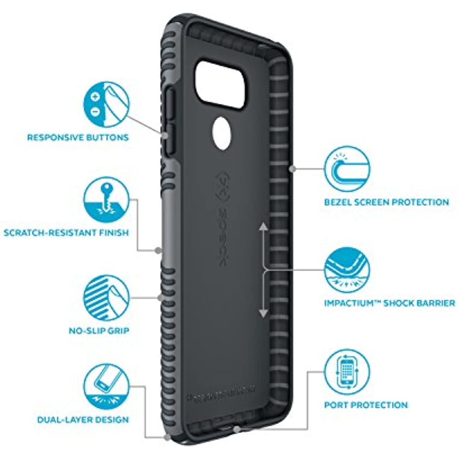 Speck's presidio line of cases offers superior slim protection with impactium shock barrier. The presidio grip case provides ultra-slim superior grippy protection. Covered by a matte finish hard outer layer, the impactium barrier absorbs and disperse shock away from your phone. Presidio cases combine a 2x level of military grade protection with a fashionably slim silhouette and a wide variety of clear, color, and patterned cases.
