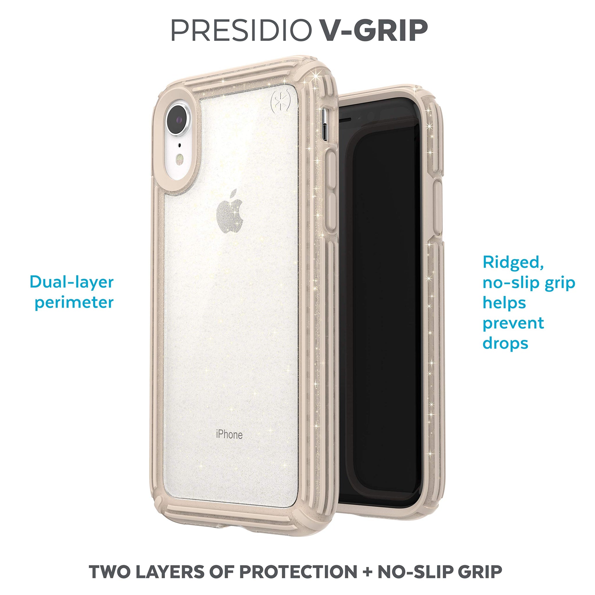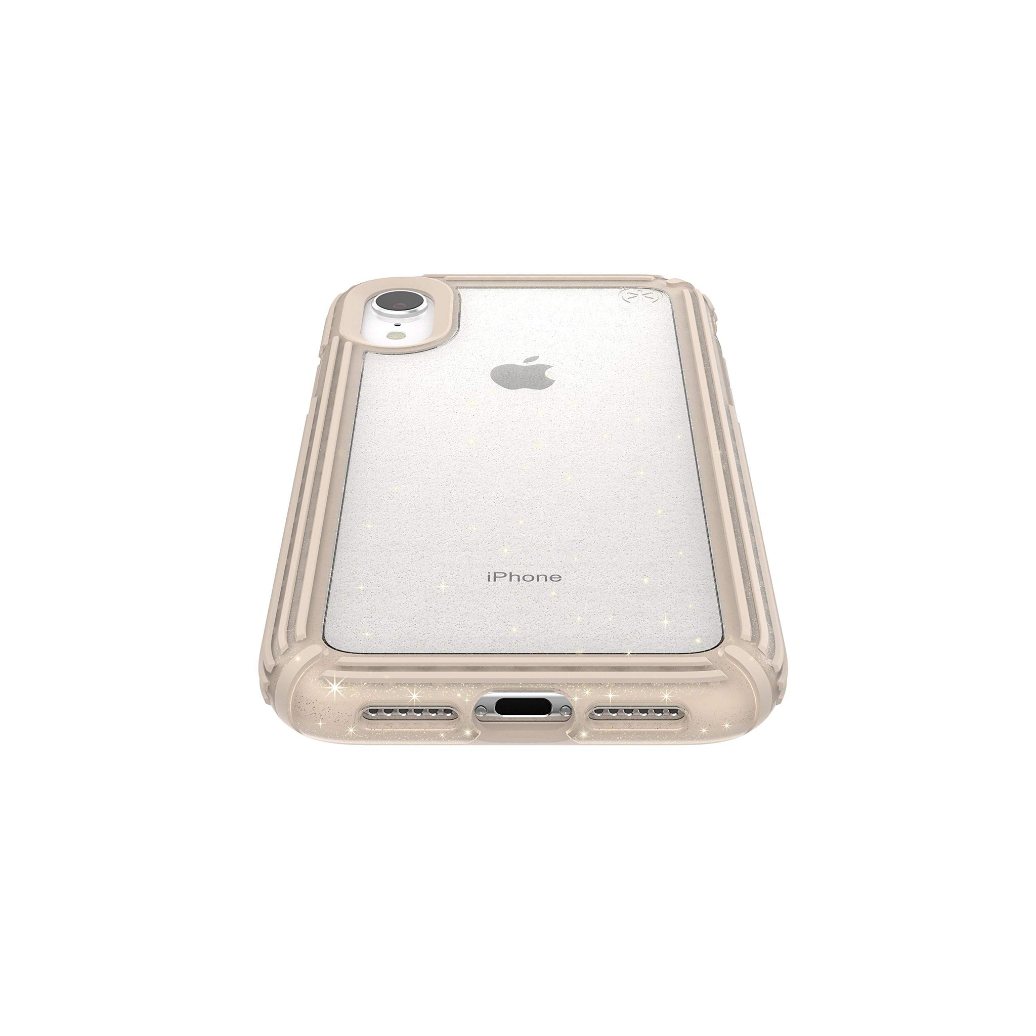Speck Products Presidio V-Grip iPhone XR Case, Clear with Gold Glitter/Calfskin Brown (120253-7730)