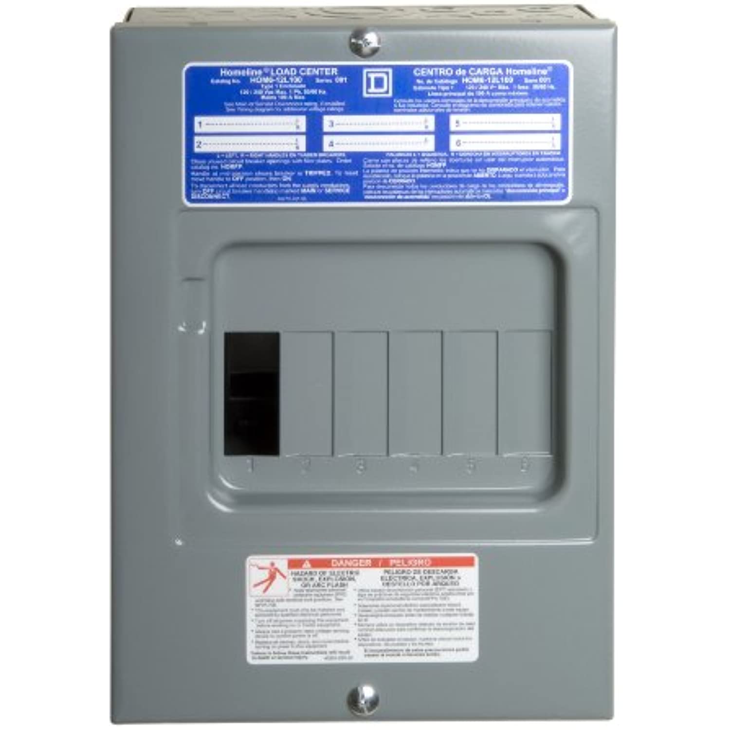 Square D - HOM612L100SCP Homeline Load Center with Cover, 100-Amp Fixed Main Lugs, 1-Phase, 6-Space, 12-Circuit, Indoor