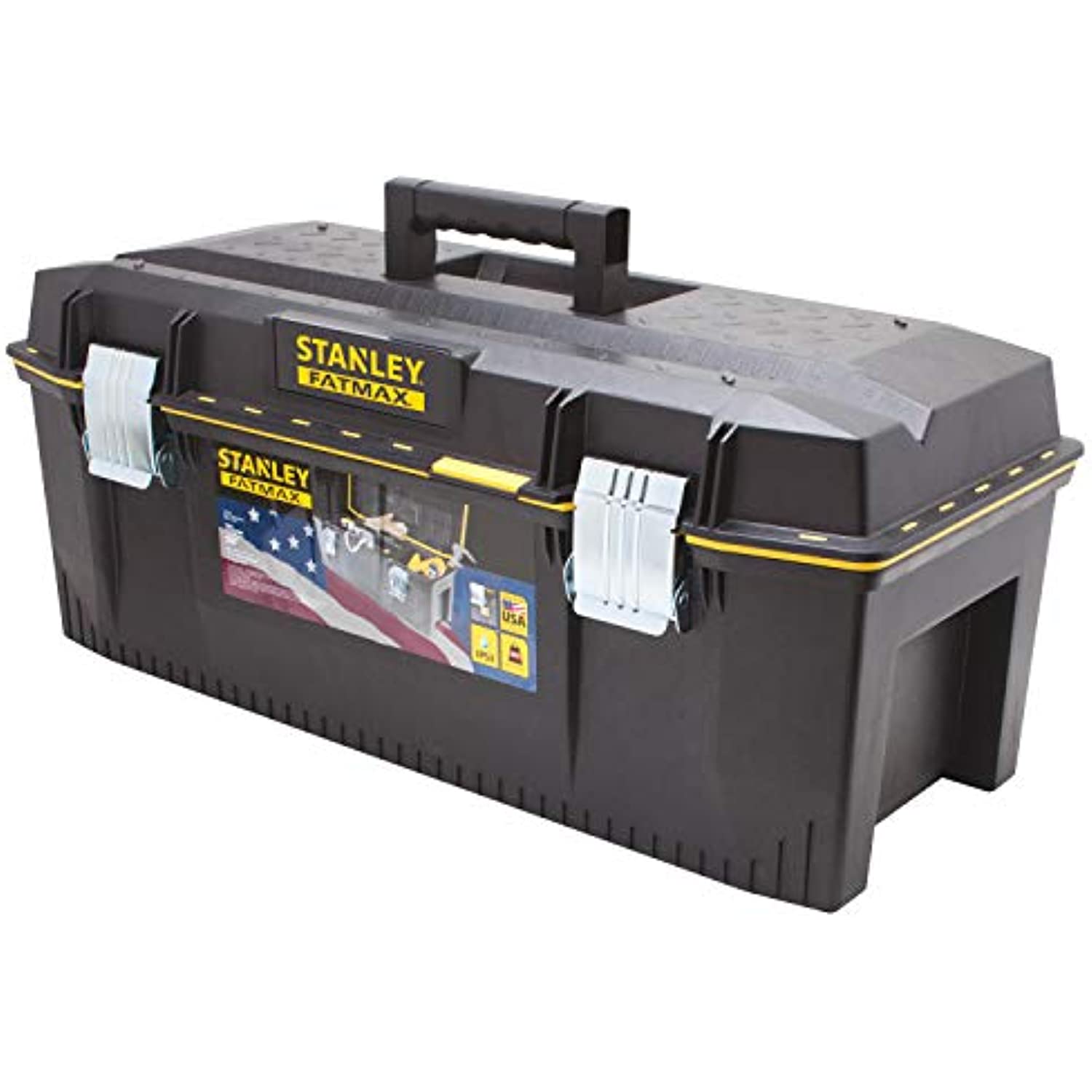 Amazon.com The Stanley 028001L FatMax 28-Inch Structural Foam Water-Resistant Toolbox offers versatility to professionals who need to keep their tools organized and protected. Developed from sturdy and rugged structural foam, this FatMax toolbox is a heavy-duty water-resistant unit ideal for carrying power tools, hand tools, and extra-large items. It features an all-around water seal for optimum protection of stored equipment.Stores and Organizes Tools and HardwareThe FatMax 28-Inch Toolbox gives you plenty of options for storing your tools and gear. Its portable tote tray is designed to carry hand tools and small parts--and because it's only three quarters of the length of the tool box, the tote tray allows for large tool storage within the box itself.For additional storage, the tool box features a bottom compartment that holds large, heavy items--such as power tools--with room to spare.Versatile, Easy-to-Carry Unit Secures Your GearThe tool box's lid top features a V-groove track that can help secure lumber, pipe, and other materials for easy sawing and cutting. For further convenience, the tool box is equipped with a tough soft-grip handle and ergonomic hand lifting resources to allow for easy carrying of heavy loads.This box also features large metal rust-proof latches that provide convenient locking possibilities.About StanleyProud of its reputation for excellence, Stanley is dedicated to continually testing, designing, and improving its products to ensure quality and maximum function. The company strives to maintain its standing as being the world's best--exactly what you expect from a name like Stanley.What's in the BoxStanley 028001L FatMax 28-Inch Structural Foam Water-Resistant Toolbox. Product Description Carry power tools, hand tools, gear, and other medium-to-large items in the STANLEY 28-inch FATMAX Structural Foam Tool Storage Box. Structural foam consists of thermoplastic resin and flake mica that increases structural durability. This STANLEY tool box also features a soft-grip handle for comfortable carrying and a patented water-tight seal to protect your equipment. From the Manufacturer Stanley 028001L 28-Inch structural foam toolbox.
