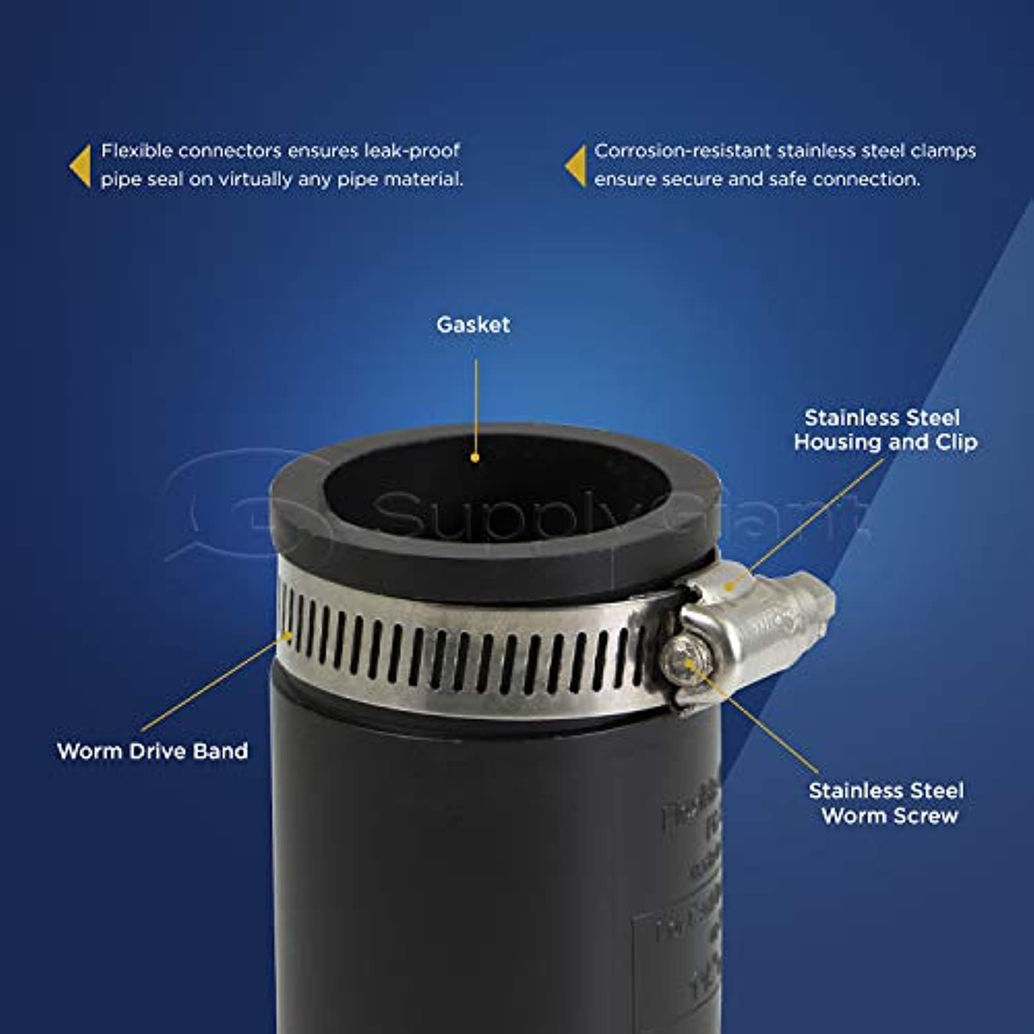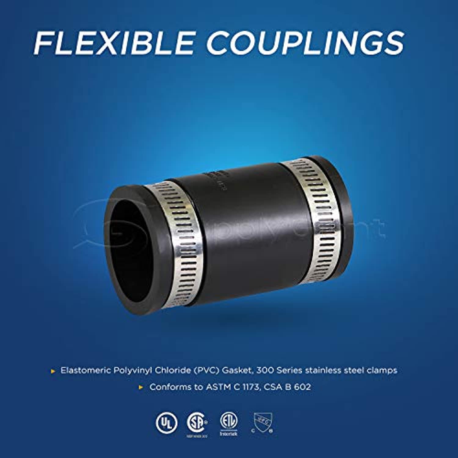 Supply Giant Flexible Couplings have found wide acceptance among sewer and plumbing contractors and municipalities because of their quality and ease of installation. Supply Giant pipe couplings and adapters are used for all types of in-house and sewer connections: drain, waste, vent piping, house-to-main, repairs, cut-ins, conductor, roof drains and increasers-reducers. Manufacturing thousands of different flexible coupling types, ⚠ California Proposition 65 Warning: This product is known to the state of California to cause cancer, or other reproductive harm. For more information, go to www.p65warnings.ca.gov.