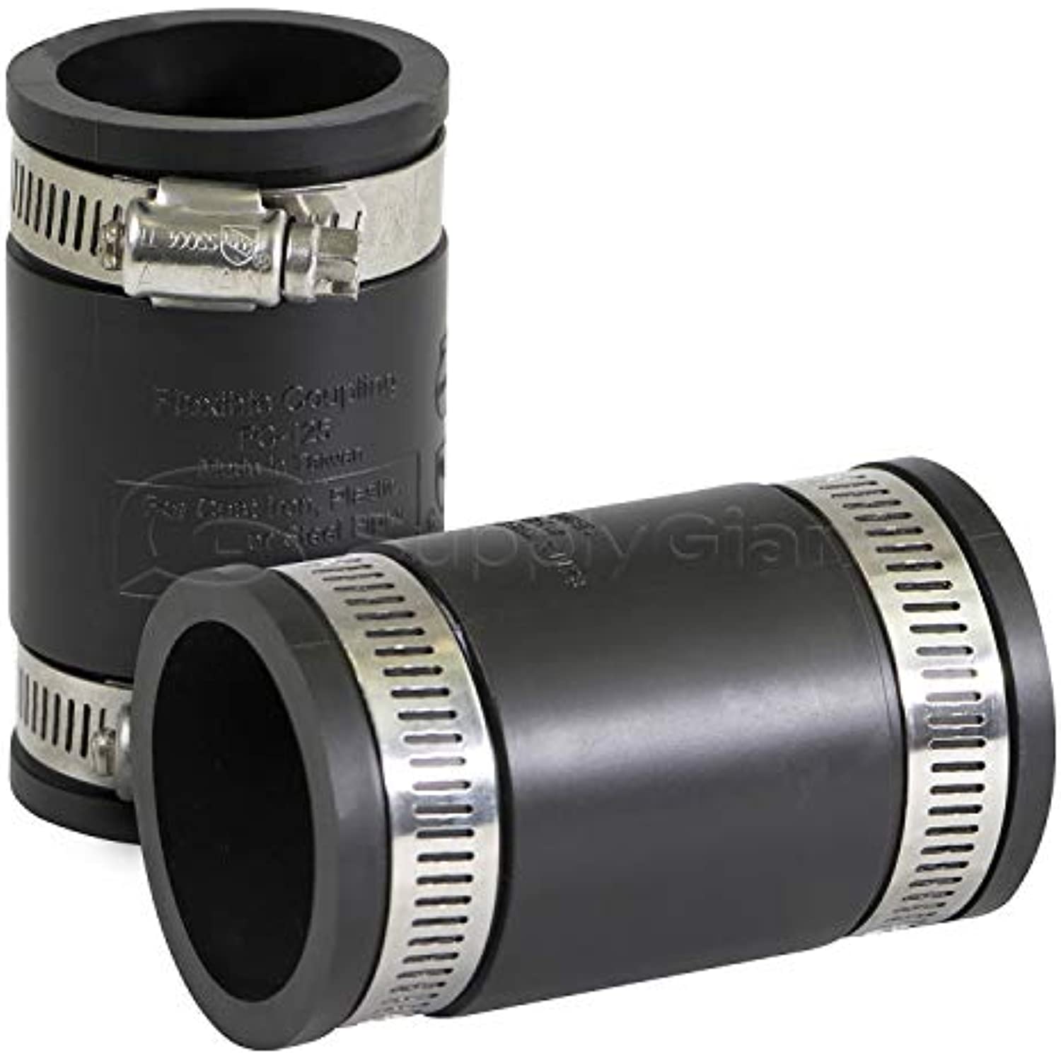 Supply Giant 6I45 Flexible Pvc Coupling with Stainless Steel Clamps, 1-1/4", Black