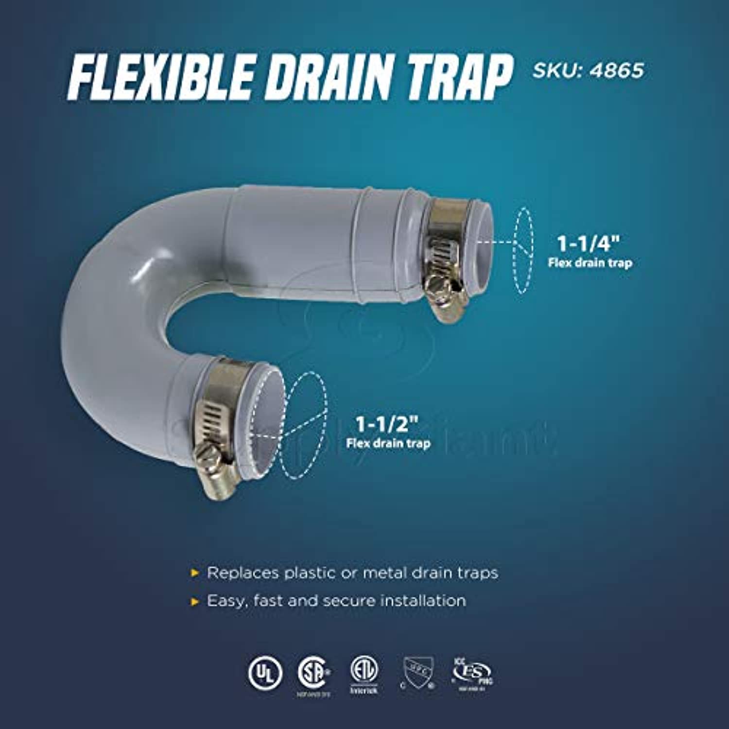 The PVC Drain Trap is made of flexible PVC that can adjust to pipe misalignment. Easy to install in tight spaces. Connects kitchen or bathroom drains. To installuse a torque wrench for a water tight seal