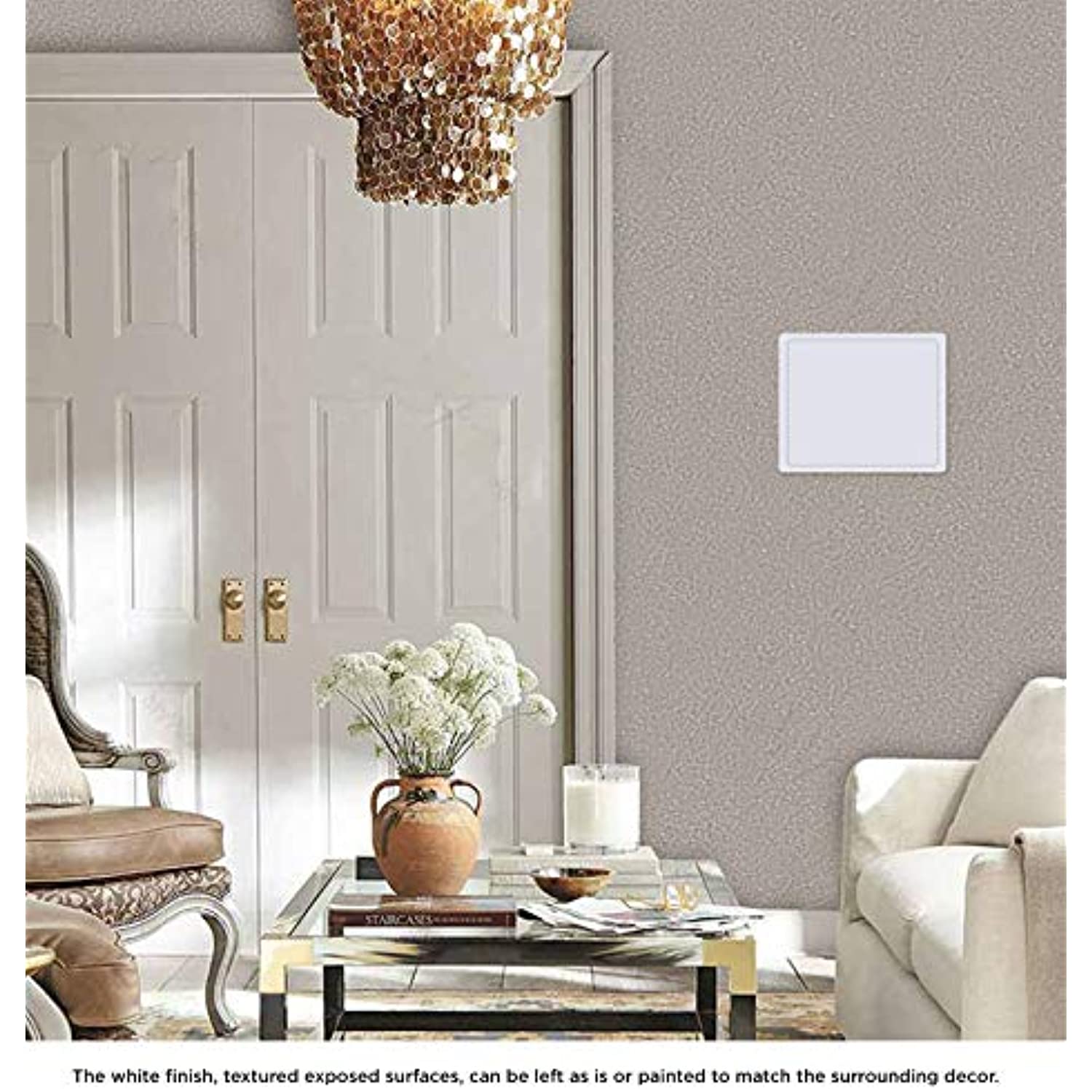 - DÉCOR:The white finish, textured exposed surfaces, can be left as is or painted to match the surrounding decor.