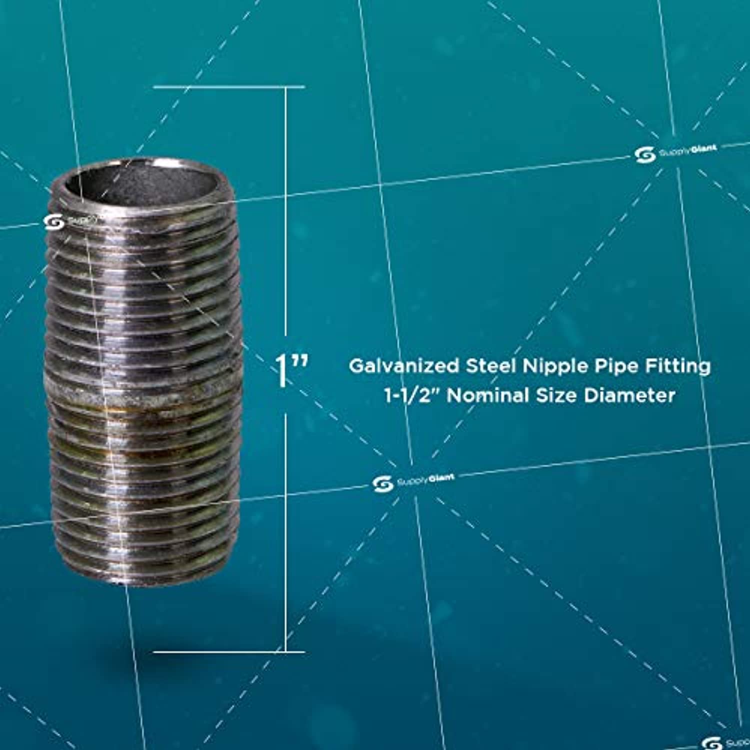 Supply Giant OQHM1500-10 Pre Cut Industrial Closed Steel Nipple, Connectors, Used To Build Vintage Furniture, Threaded Pipes and Fittings, 1-1/2'' x 1", Galvanized (Pack of 10), 1-1/2" x 1"