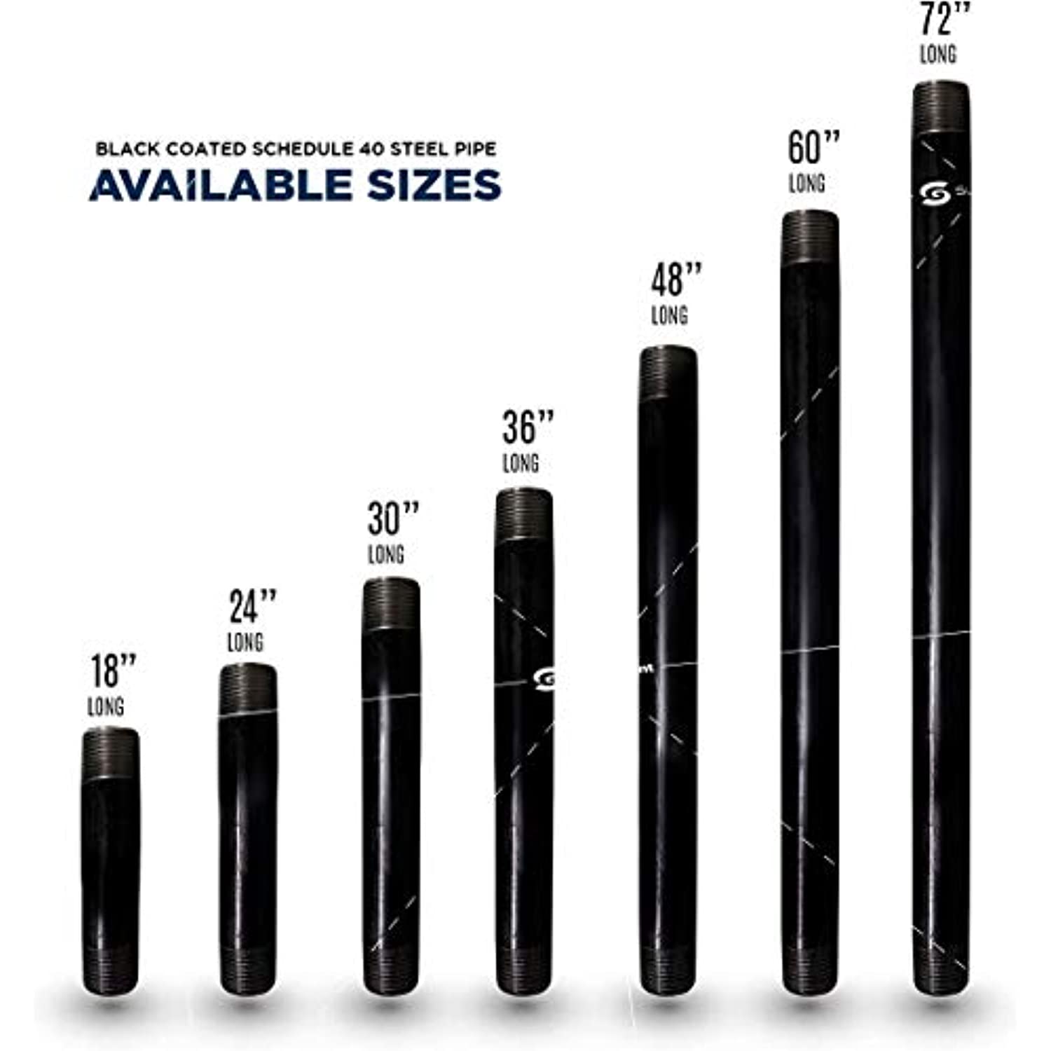 - SAVE HUGE: Our 1/2’’ x 18’’ Black Pipe is Ideal for Building an Industrial Table or Shelf with Less Hassle and Reduced Cost. Pipes Come In a few Sizes Purchase the Length You need