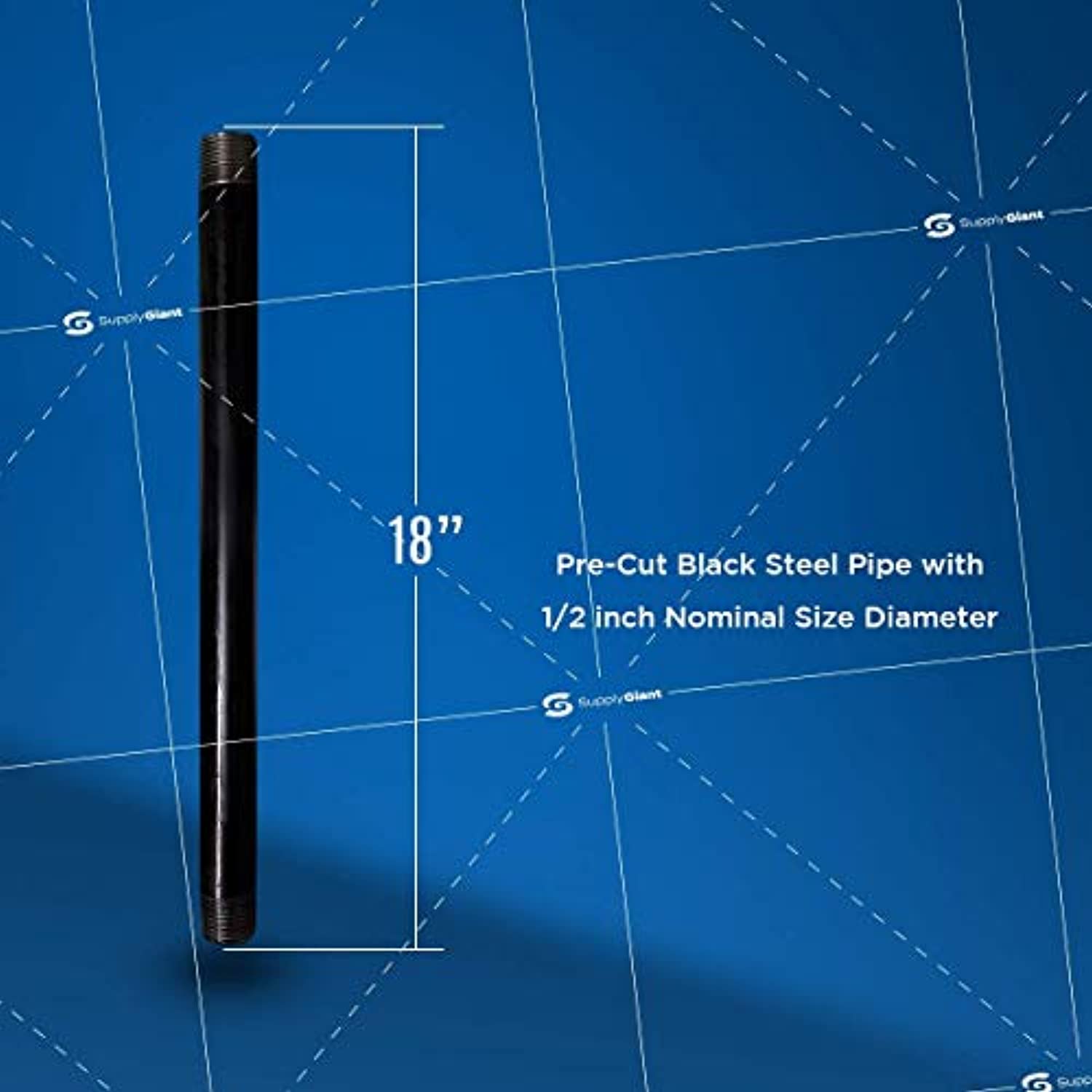 Supply Giant QDCM1218-5 1/2 Inch Black Steel Pipe, Threaded Half Inch Malleable Fitting Build DIY Vintage Furniture, 1/2" x 18" (Pack Of 5), 5 Pack