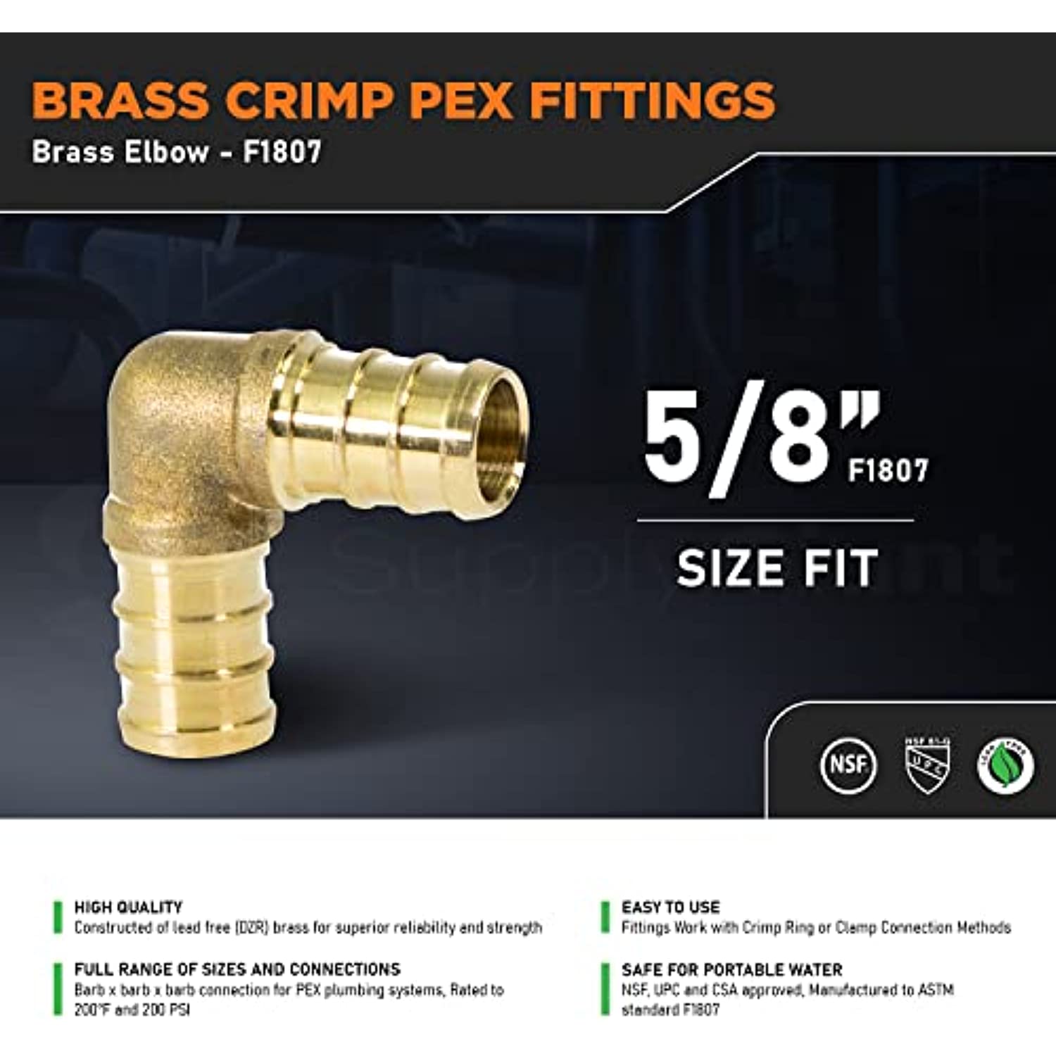 From the Manufacturer 5/8-Inch Brass Pex Barb 90 Degree elbow-Lead Free. Approved By UPC, NSF, And CSA. Use with: Pex tubing in accordance with ASTM F876 & F879. Material: Forged No-Lead Brass.