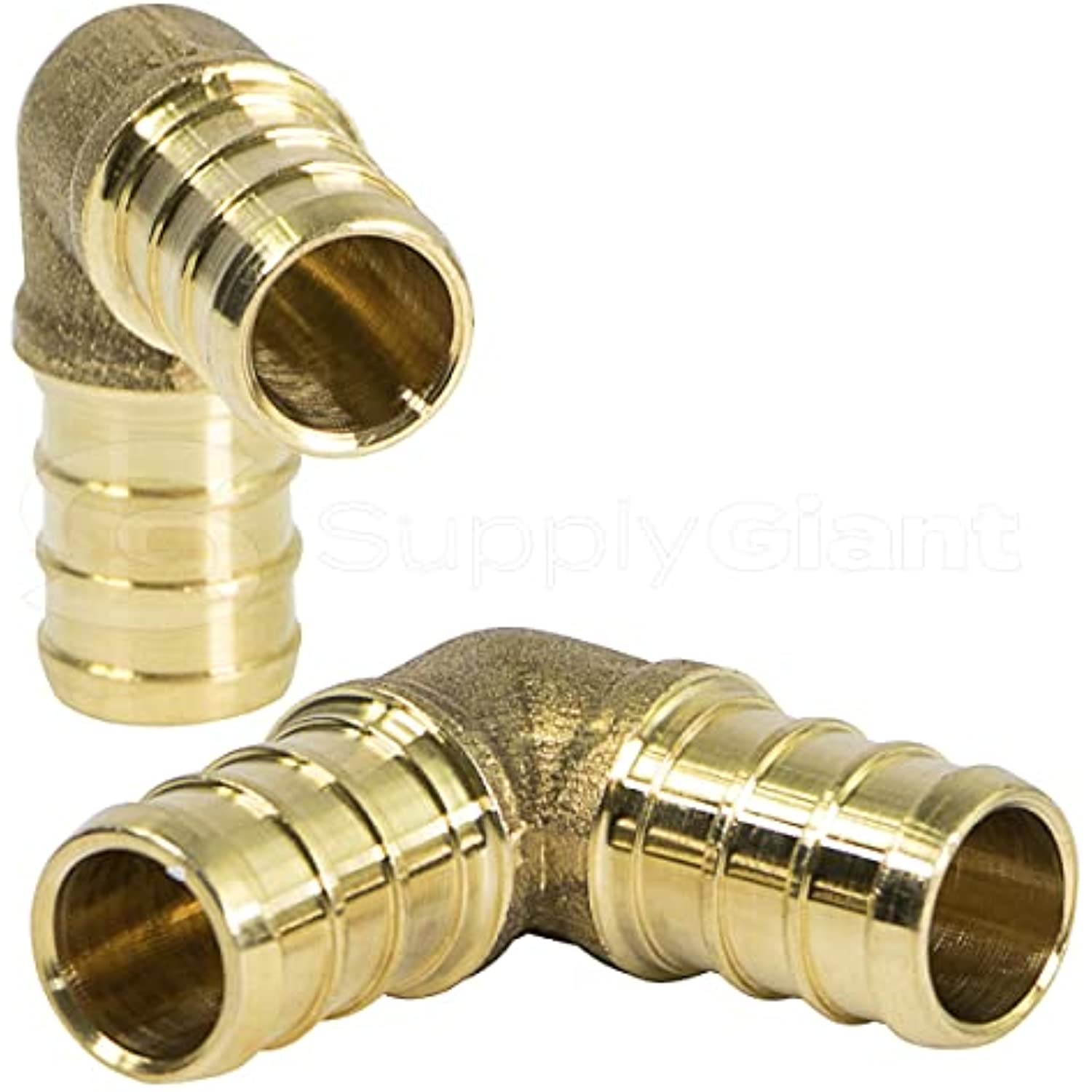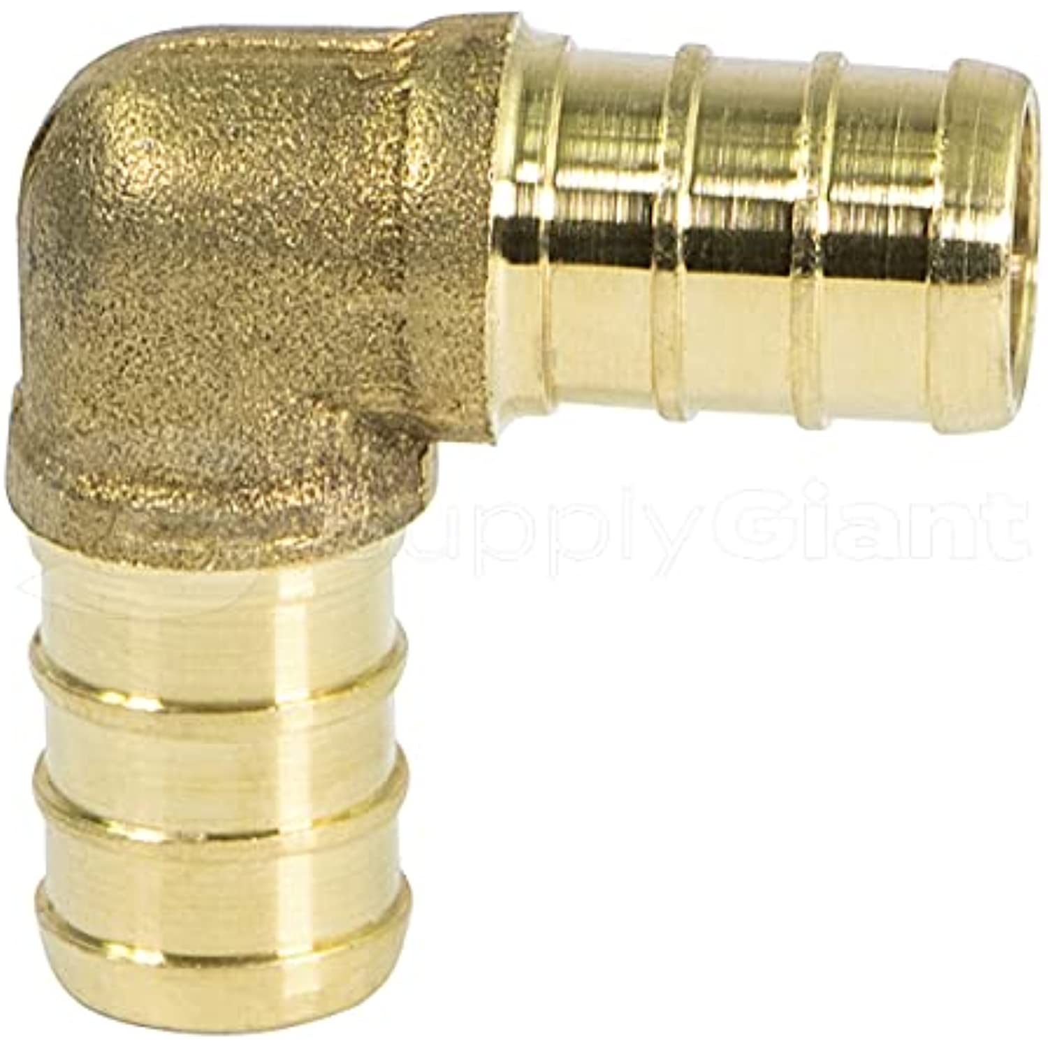 Supply Giant QYMO0058-OM x PEX 90 Degree Elbow Barb Pipe Fitting 5/8" Brass, 5/8 Inch