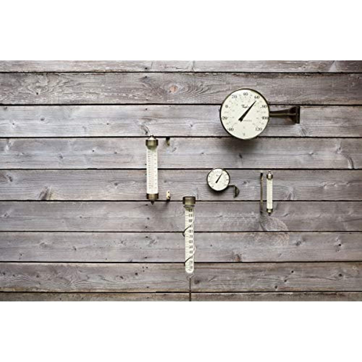 - Measure temperature indoors or out with this traditionally styled metal dial thermometer.