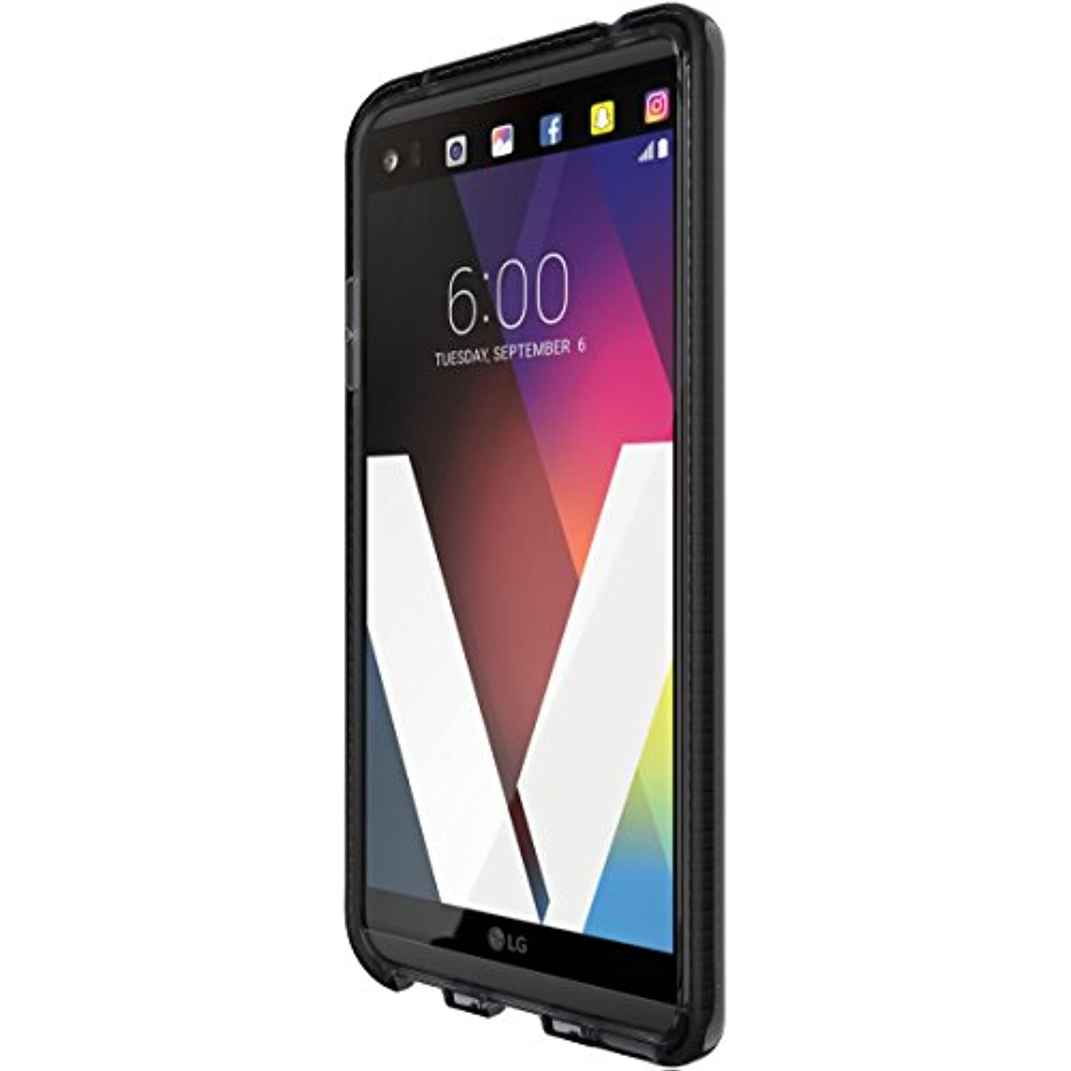 COMPATIBILITY:LG V20Why do you see Tech21 brand cases at major retail stores? Why do service providers offer Tech21 cases alongside their phones? It's simple. Tech21 is a premium brand that exudes quality. The protection and fitment and functionality never disappoint. FLEXSHOCK: At the heart of all of the Tech21 products is the patented FlexShock protection. Tech21's unique FlexShock material surrounds the perimeter of your phone. This spongy polymer protects from drops of up to 12 feet (3.6 meters). FlexShock is a "visco-elastic" material that not only absorbs shock but also repels it. This advanced technology allows Tech21 cases to remain slim (30% thinner and 60% lighter than competitor products offering the same level of protection). STYLE: Want to mix things up a little? The EVO Check adds some style and personality to your phone with its bestselling checked pattern. Keep that slim profile and get rock-solid protection in the process. FUNCTIONALITY: Your phone remains fully functional in the case with access to all ports. Flexible buttons provide expert accuracy and great feedback. This case is wireless-charging-compatible. COLOR: This offer is for the BLACK color with see-thru smoke pattern.