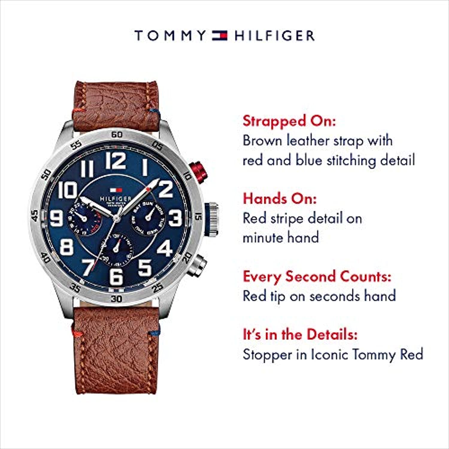 Tommy Hilfiger Men's Stainless Steel Quartz Watch with Leather Strap, Brown, 22 (Model: 1791066)