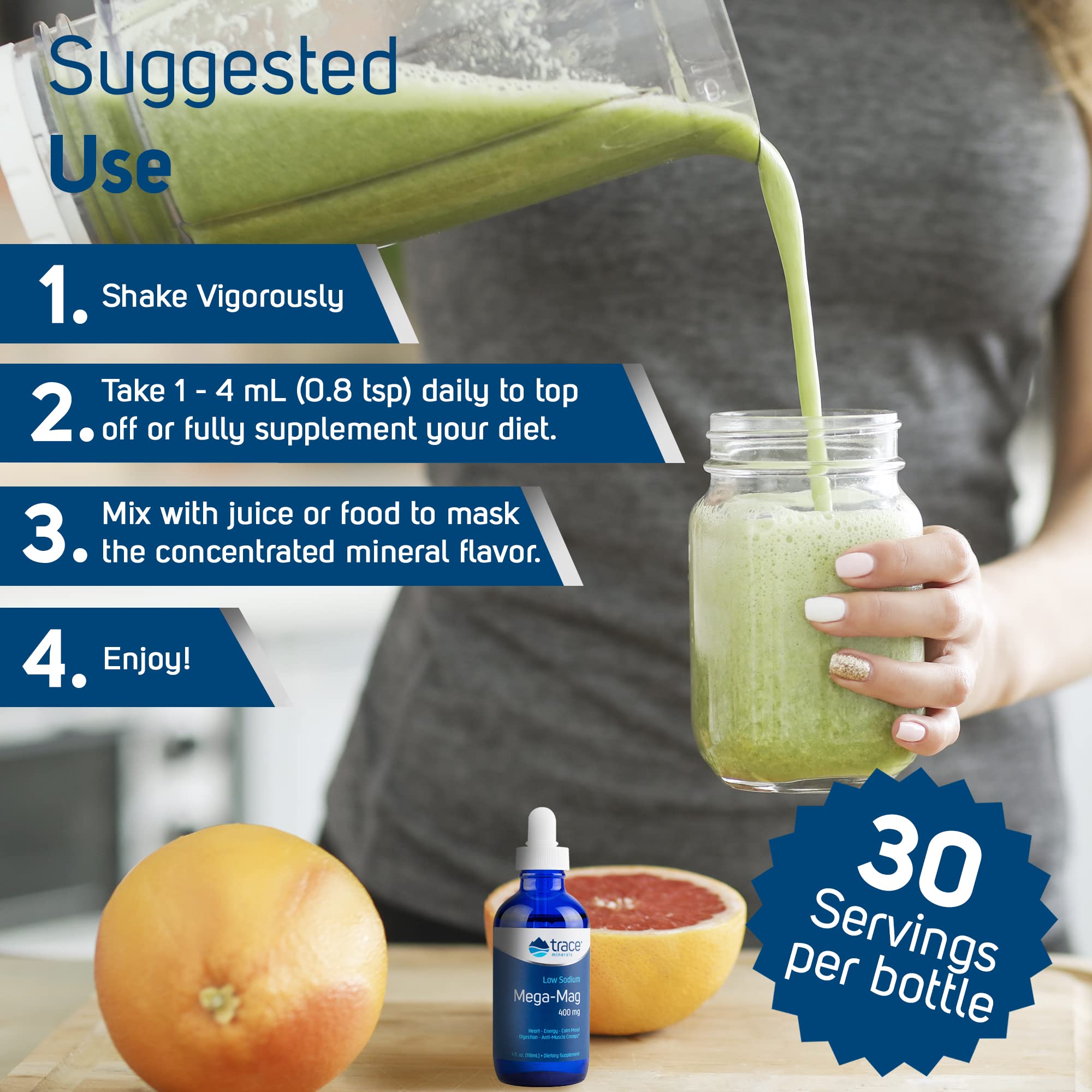 Trace Minerals | Mega-Mag 400 mg Liquid Magnesium Chloride | Supports Normal Heart Health, Calm Mood, Digestion, Sleep | Helps with Muscle Cramps | 30 Servings, 4 fl oz (1 Pack)