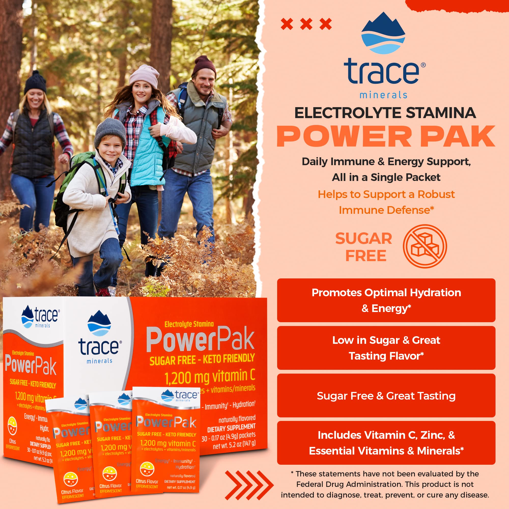 Trace Minerals – Power Pak | Sugar Free Electrolyte Powder Packets with Vitamin