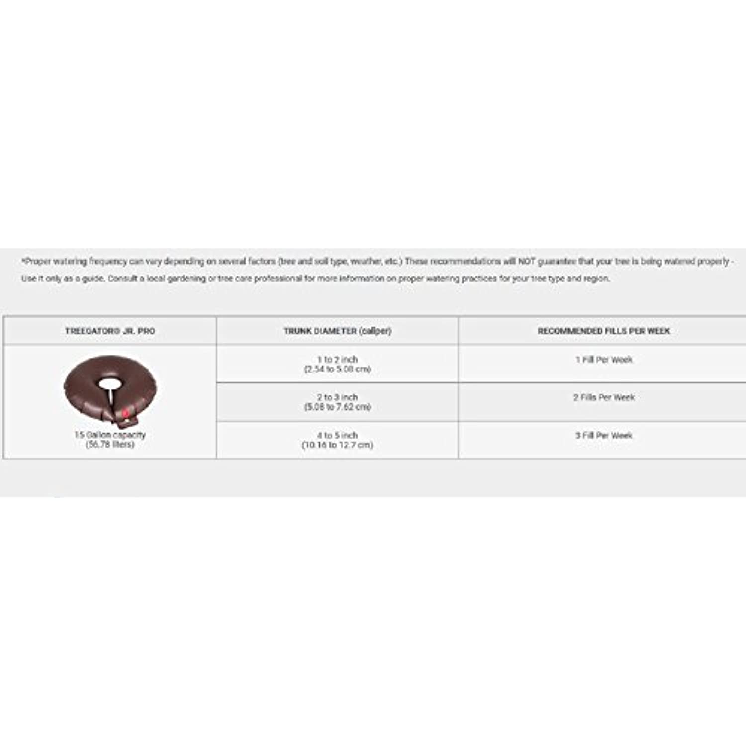 Product Description Treegator Jr. Pro is a slow release watering bag for trees, shrubs or evergreens that features a low-profile design which enables it to fit under plantings with branches beginning only 6 inches above the ground. From the Manufacturer Treegator Jr. Pro is a slow-release watering bag for newly planted or established trees, shrubs, and evergreens. Our brown Treegator Jr. Pro bag delivers a high volume of water (up to 15 gallons) directly to the root system with no run-off or evaporation, helping to significantly reduce the effects of drought and transplant shock. A Treegator Jr. Pro is simple and easy to install and requires no tools - just place the bag around the trunk, fill and let it drip! Treegator saves you time, money and effort - all while properly and efficiently watering your tree, shrub or evergreen planting over a 5 to 8 hour time period. Treegator Jr. Pro features a unique low-profile design that allows it to blend into the existing landscape and can be used on single or multi-trunk plantings. Treegator Jr. Pro is recommended for use on a level surface or a properly built mulch cup.