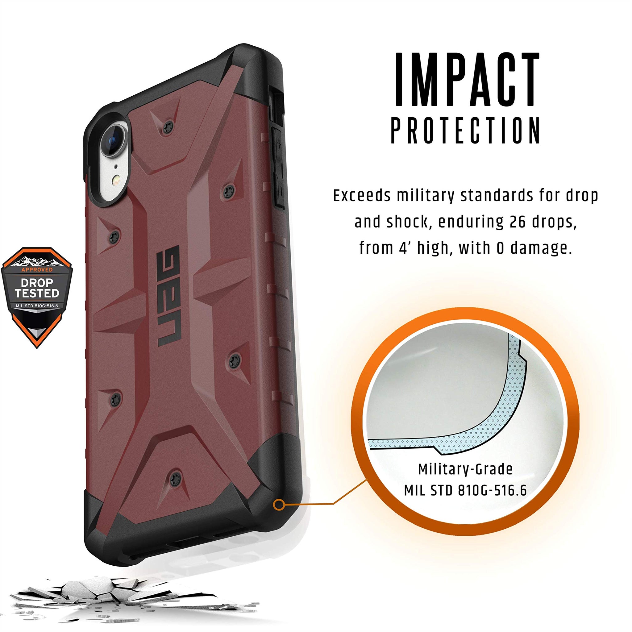 - Meets military drop-test standards [MIL STD 810G 516.6] providing increased shock protection