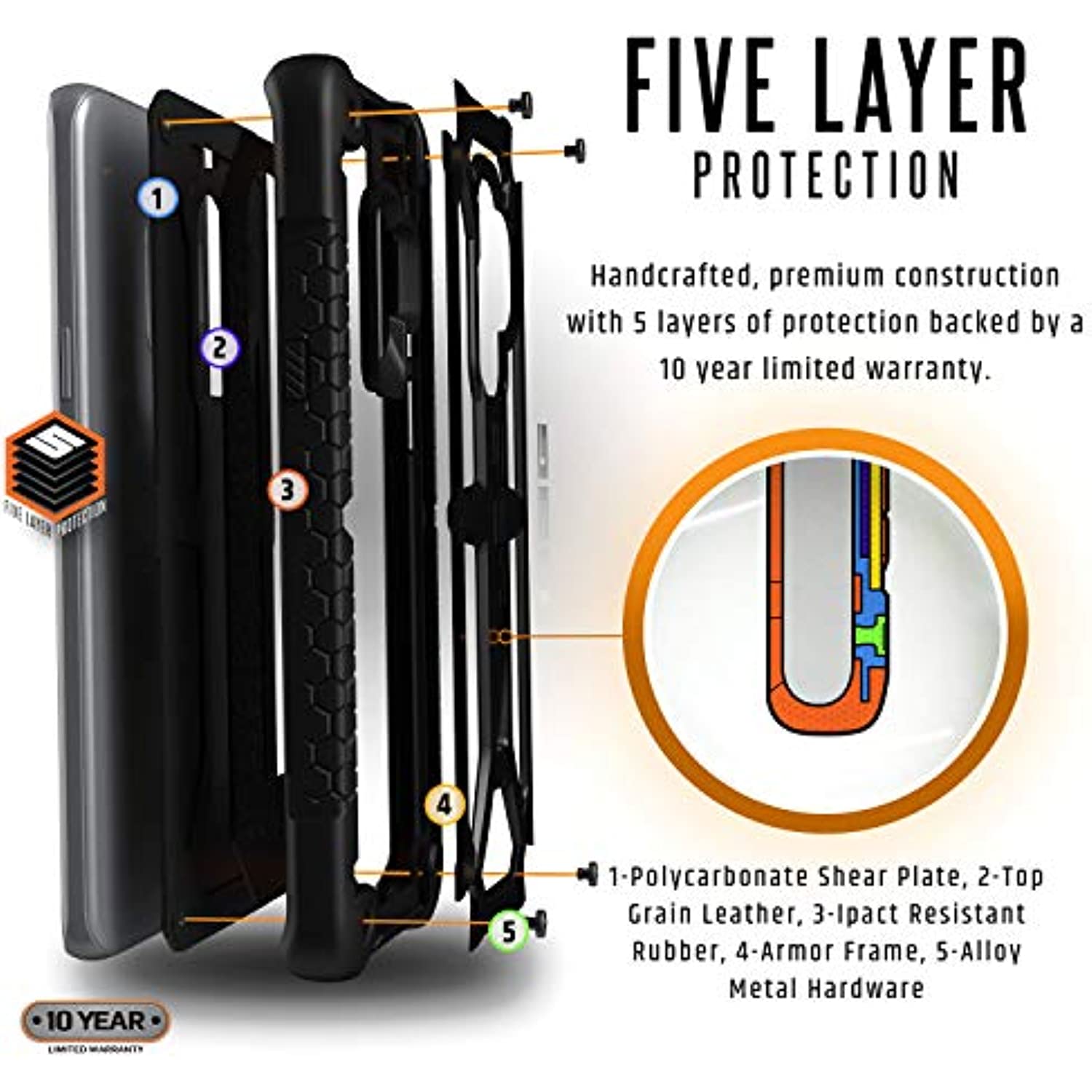 - Handcrafted, feather-light construction with 5 layers of protection with top grain leather & metal hardware