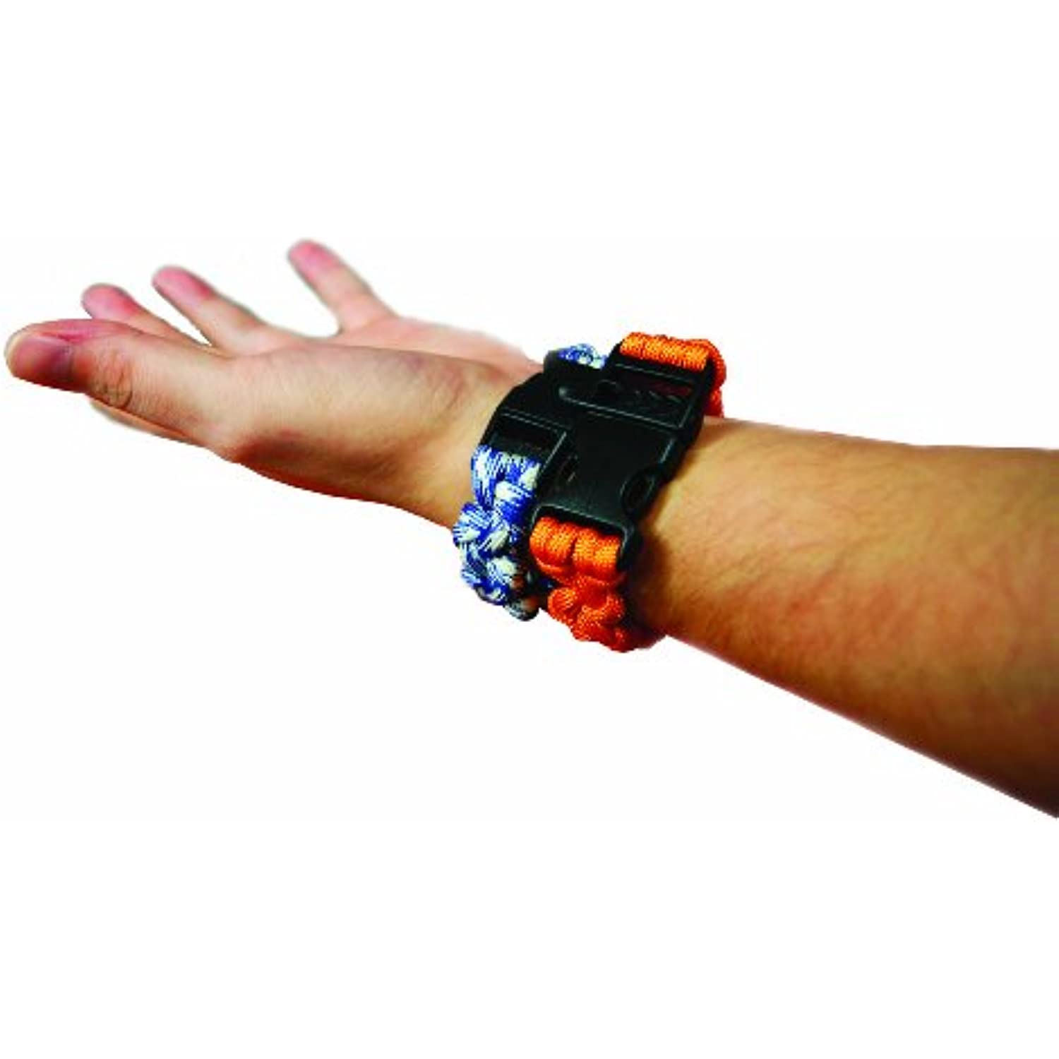 - Durable secure buckle fastens easily around wrist and has a built in high decibel whistle