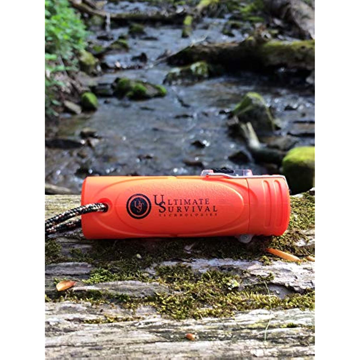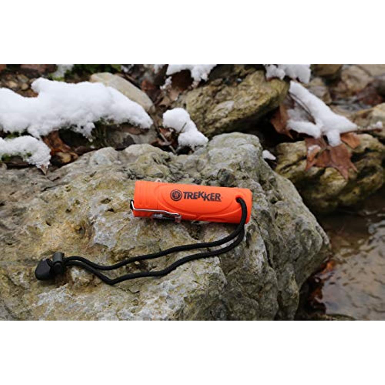 Designed for extreme wind and water resistance, the UST Trekker Stormproof lighter features a stainless steel wire closure that stands up to rugged outdoor use and an easy-grip rubberized case in high visibility orange. Eliminating the need for batteries or flint, the Trekker Stormproof uses a piezo-electric ignition system, features easy one-handed operation, and lights up to 30,000 times. The catalyzer coil provides a windproof flame, withstands winds of 70 to 80 miles per hour, performs up to an altitude of 8,000 feet, and burns at a hot 2,000 degrees F.A water resistant O-ring seal keeps rain, snow, and moisture out when cap is closed, and a stainless steel wire closure keeps it closed. A flame indicator window located on the side of the combustion chamber glows when lighter is ignited, while the flame adjuster located on the bottom ensures best fuel mix at varying altitudes. A fuel capacity window allows easy view of fuel level.The Trekker Stormproof includes a wrist lanyard so it's always close at hand. It weighs 2.4 ounces (without fuel) and measures 3.7 x 1.4 x 1.1 inches (HxWxD). It's backed by a 2-year manufacturer's limited warranty.UST Brands has been manufacturing camping, survival, personal safety, and emergency preparedness equipment for over 80 years, including innovative LED lights, all-weather fire starters, premium outdoor cutting tools, camp kitchen products, first aid kits, unbreakable signal mirrors, and more.