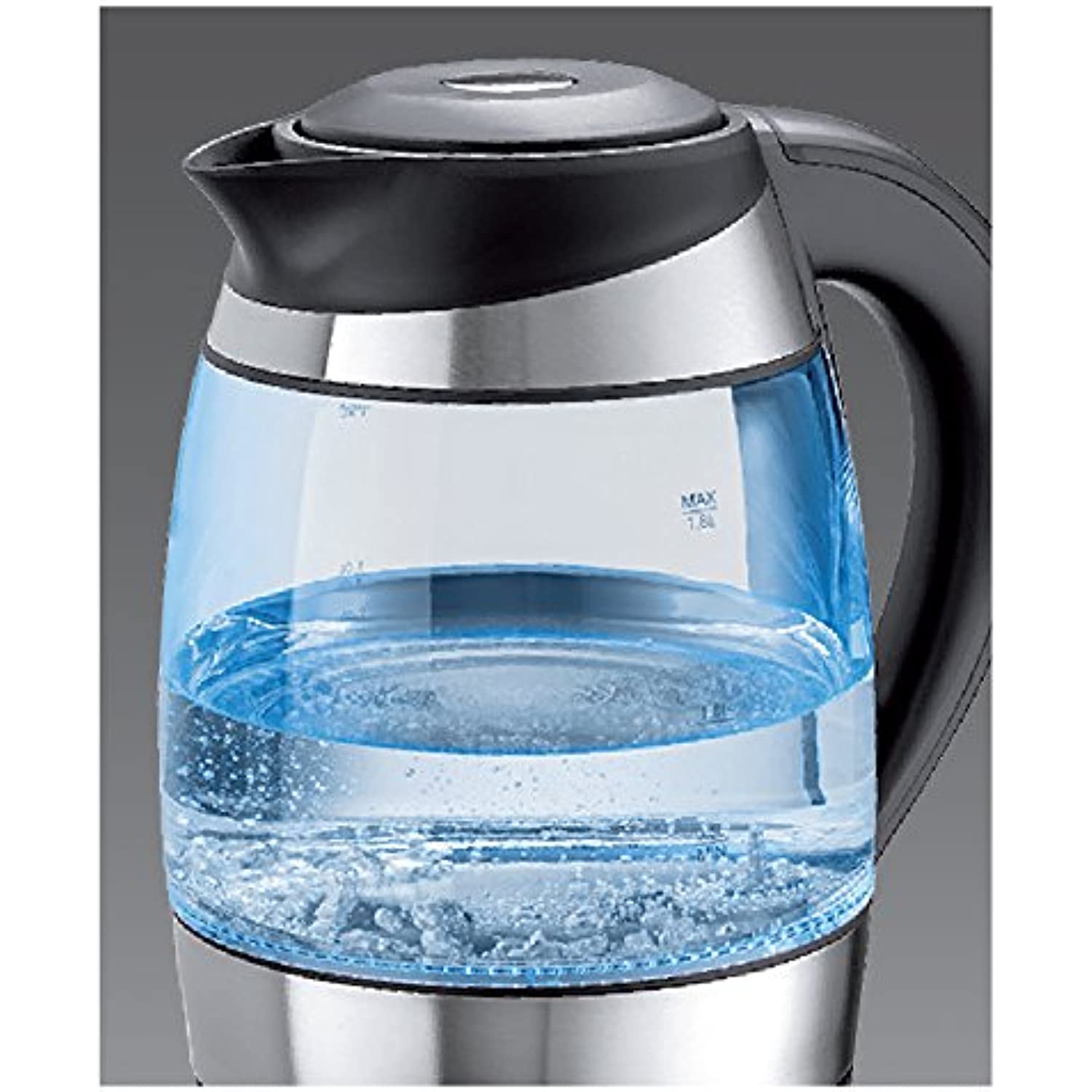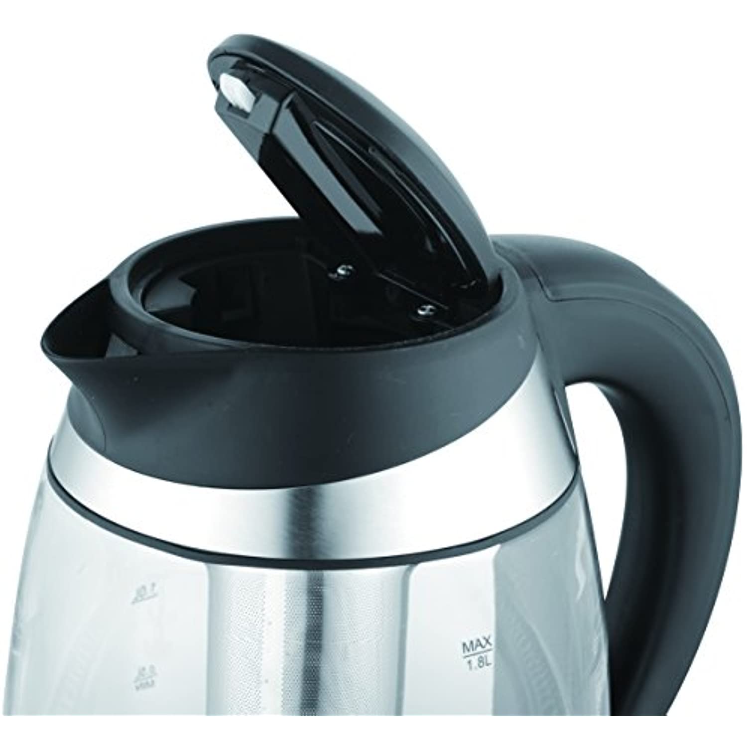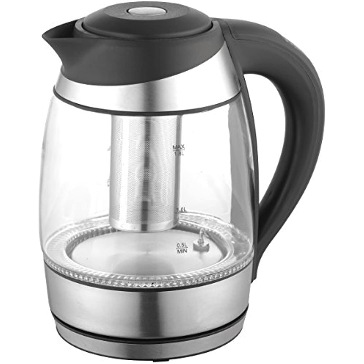Edge electric tea kettle - electric glass tea kettle with stainless infuser digital control. Stainless steel bottom accent rim. 9. 84 in. H. X 7. 36 dia. 8. 66 in. W. Including handle. - Capacity: 1 L. , Material: glass, Type: Electric, Color: Silver, whistling: N, handle type: plastic, handle Color: black, Package Sty: 1, package Type: box