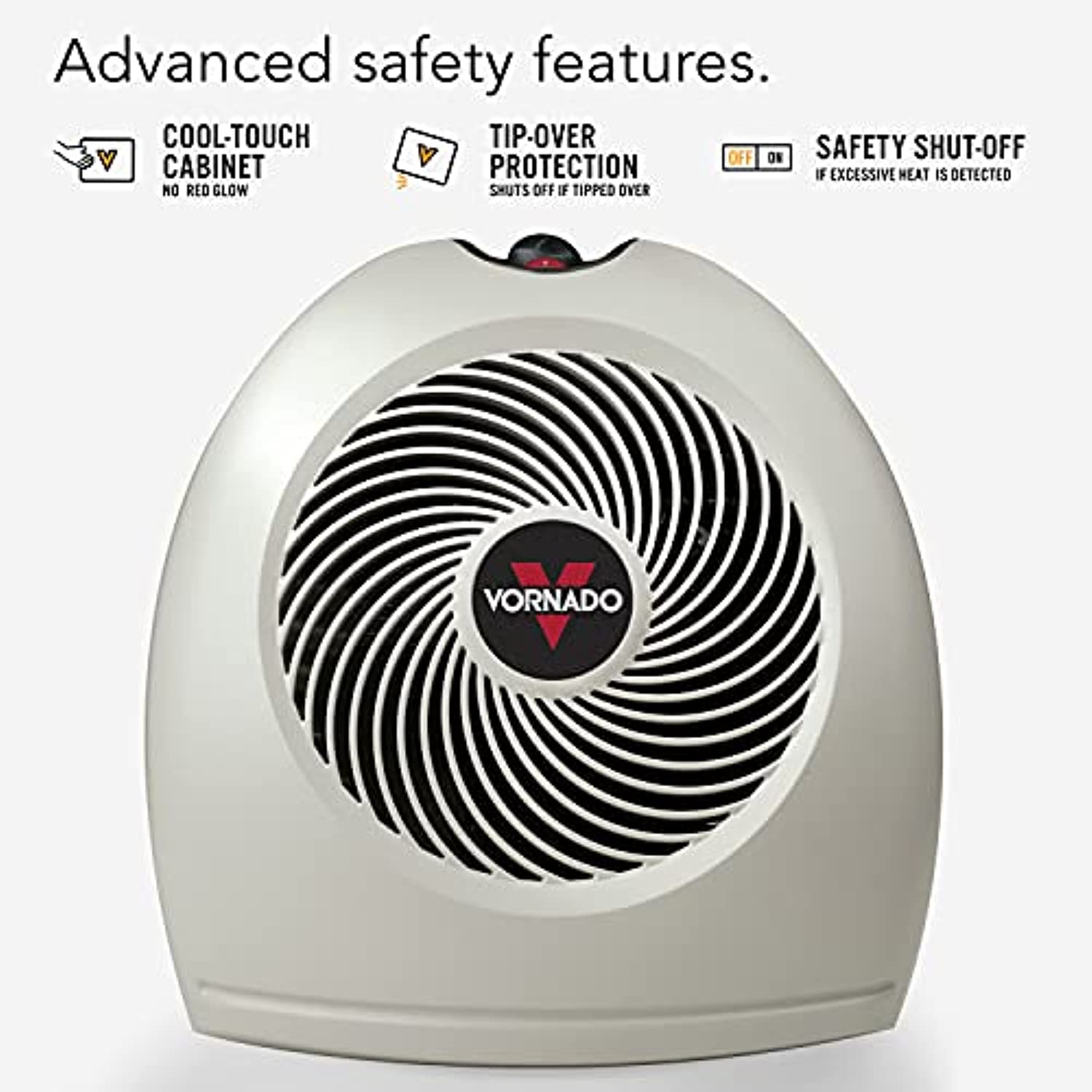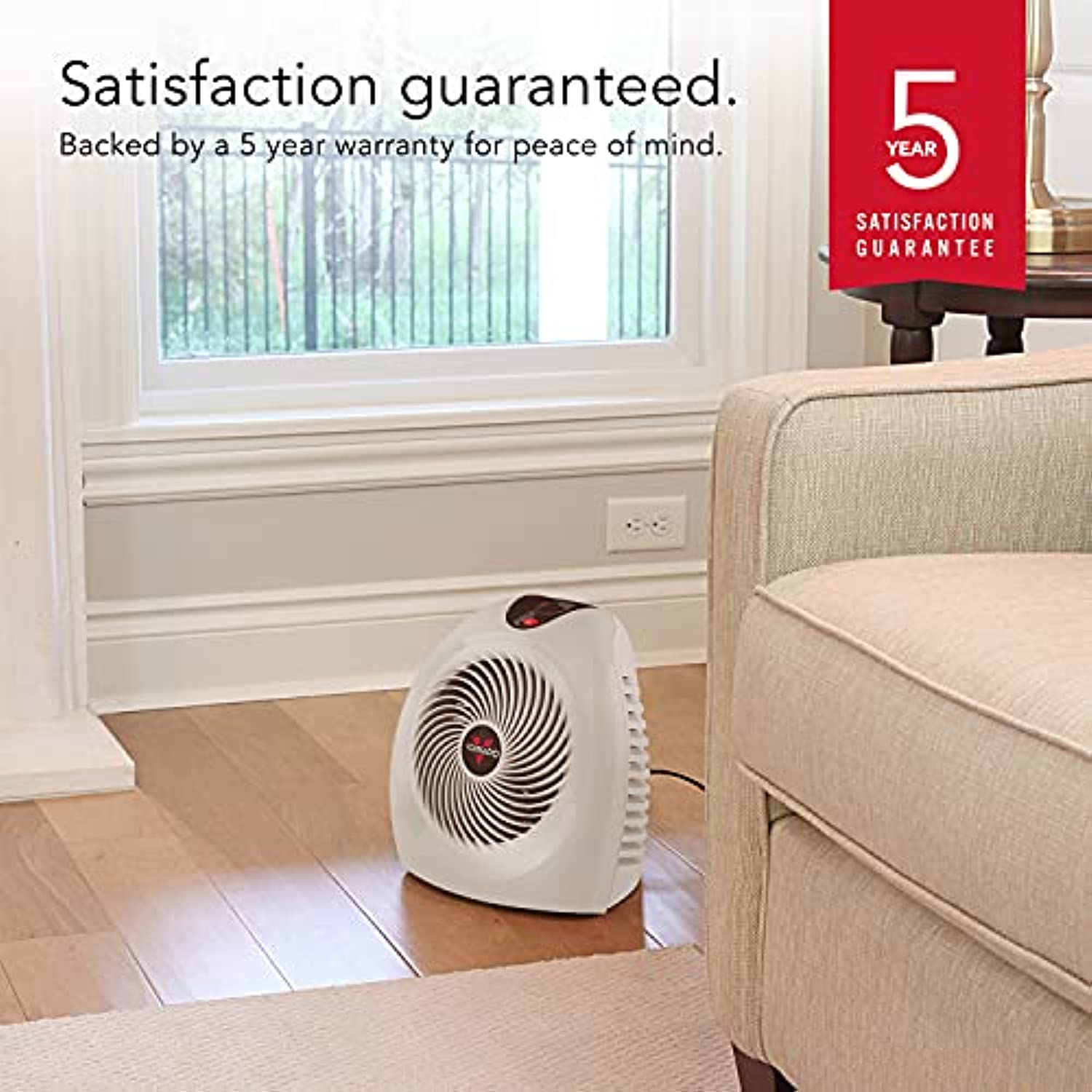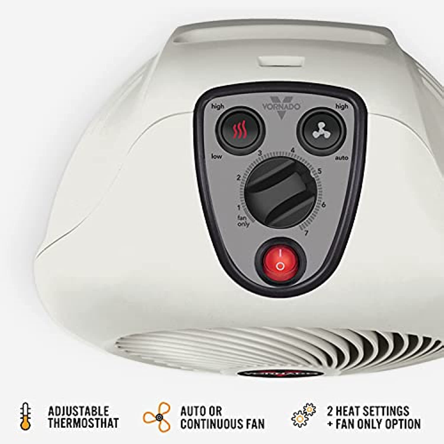 Surround yourself in a blanket of warmth with the Vornado Whole Room Heater. The VH2 not only generates heat but circulates it throughout the entire room, also letting you take advantage of heat already in the room. Its cool-touch case and automatic tip-over and overheat protection provide worry-free use at home or at the office. Thermostatic temperature control, automatic or continuous fan operation and two heat settings (low 750 watt or high 1,500 watt) allow you to create the perfect environment. 5-year satisfaction guarantee.FEATURES
