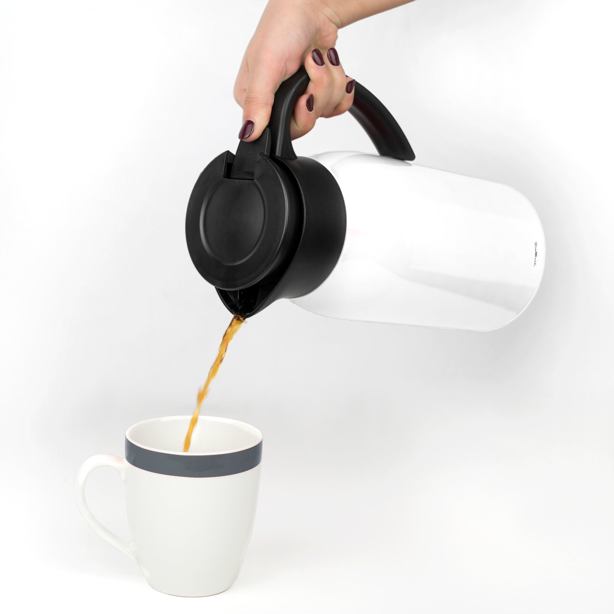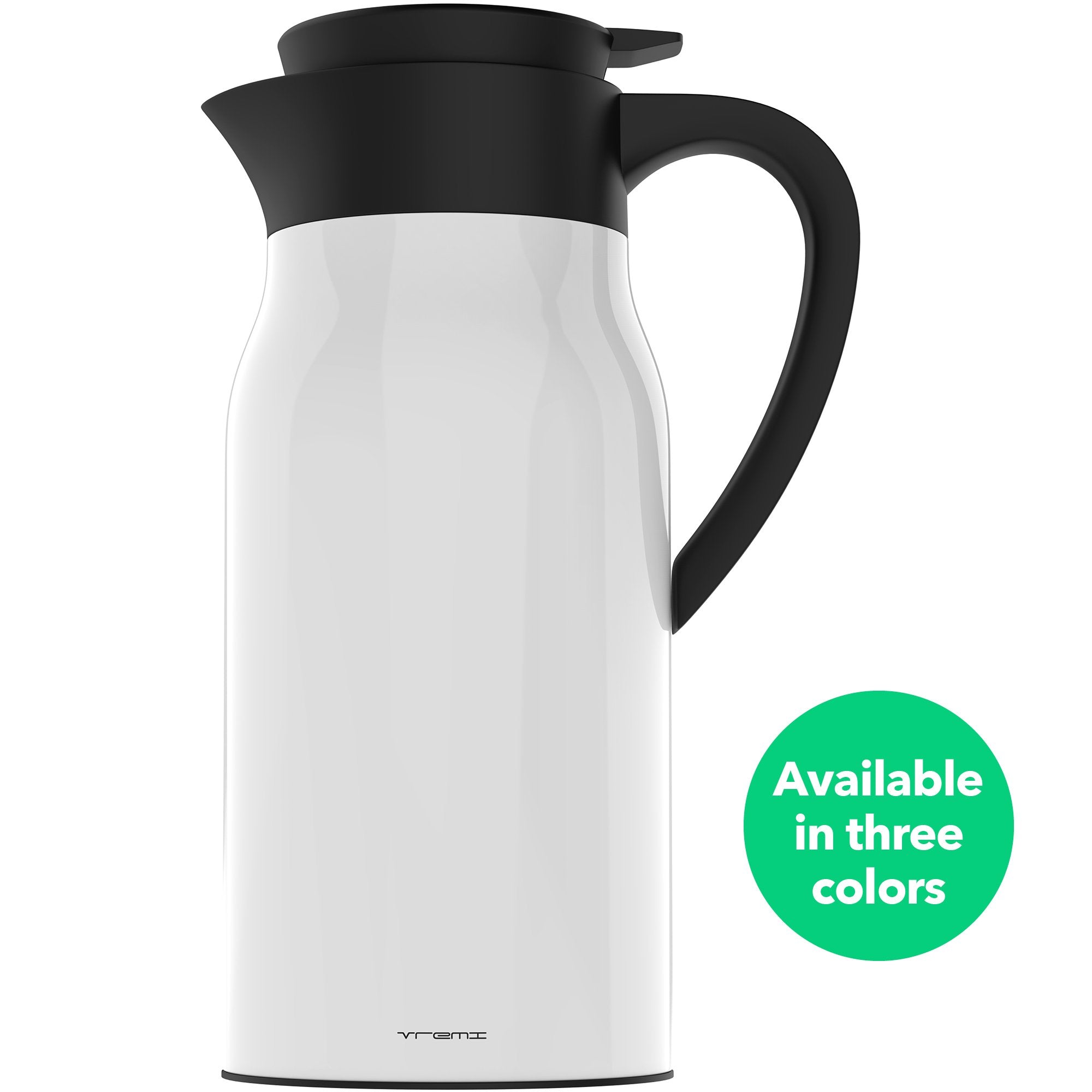 Vremi 51 Ounce Stainless Steel Thermal Coffee Carafe - 1.5 Liter Double Walled Vacuum Insulated Large Tea Thermos with Leak Proof Lid - Compact Travel-Size Thermal Pots Hot Cold Beverage - White