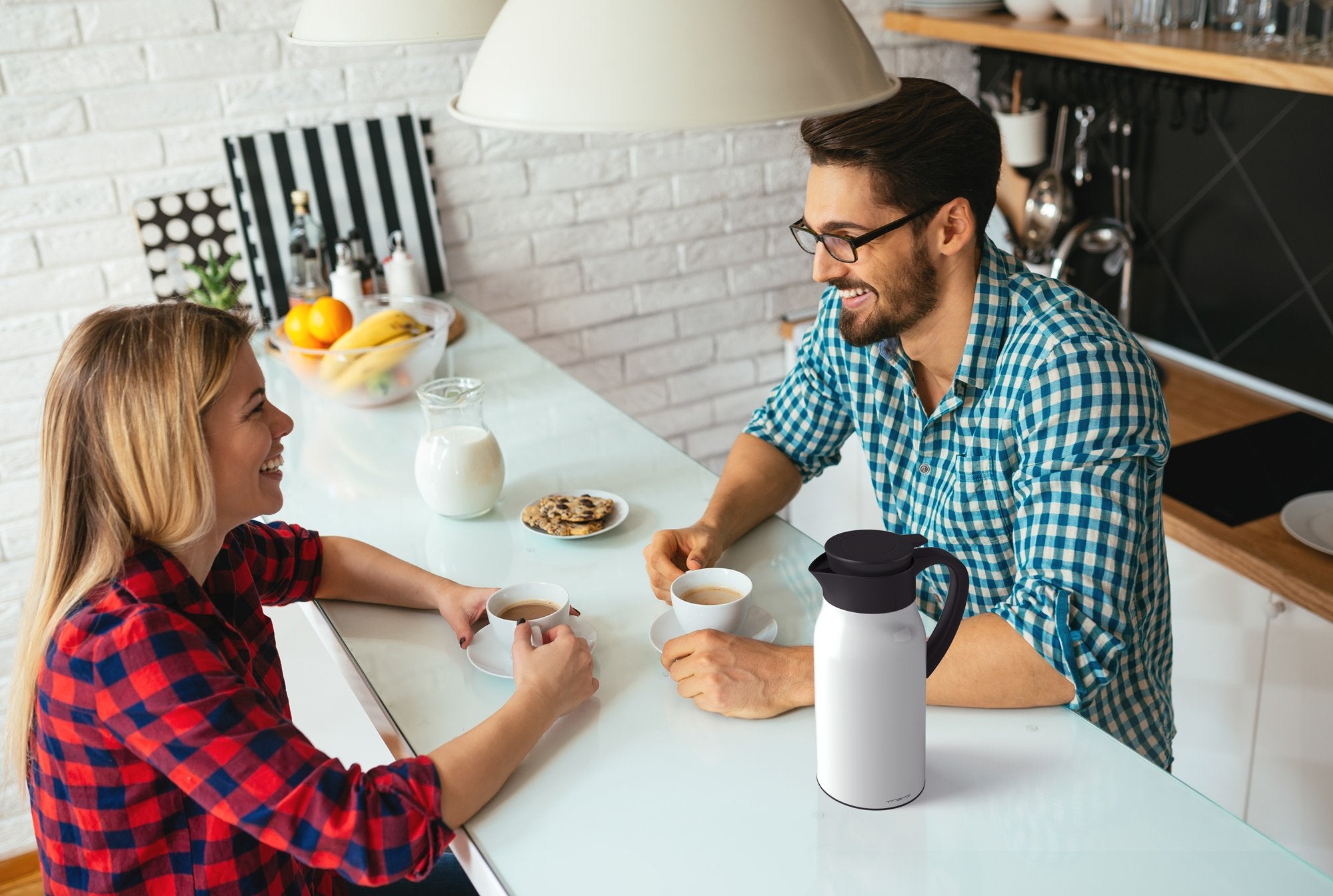 - DOUBLE WALL STAINLESS STEEL BODY - Built with double wall construction in durable stainless steel to maintain a heat-resistant exterior for no burn results, with silver lined kettle interior and fun red, blue or white enamel color options on the carafes outside. Safe and non toxic, and 100% BPA free