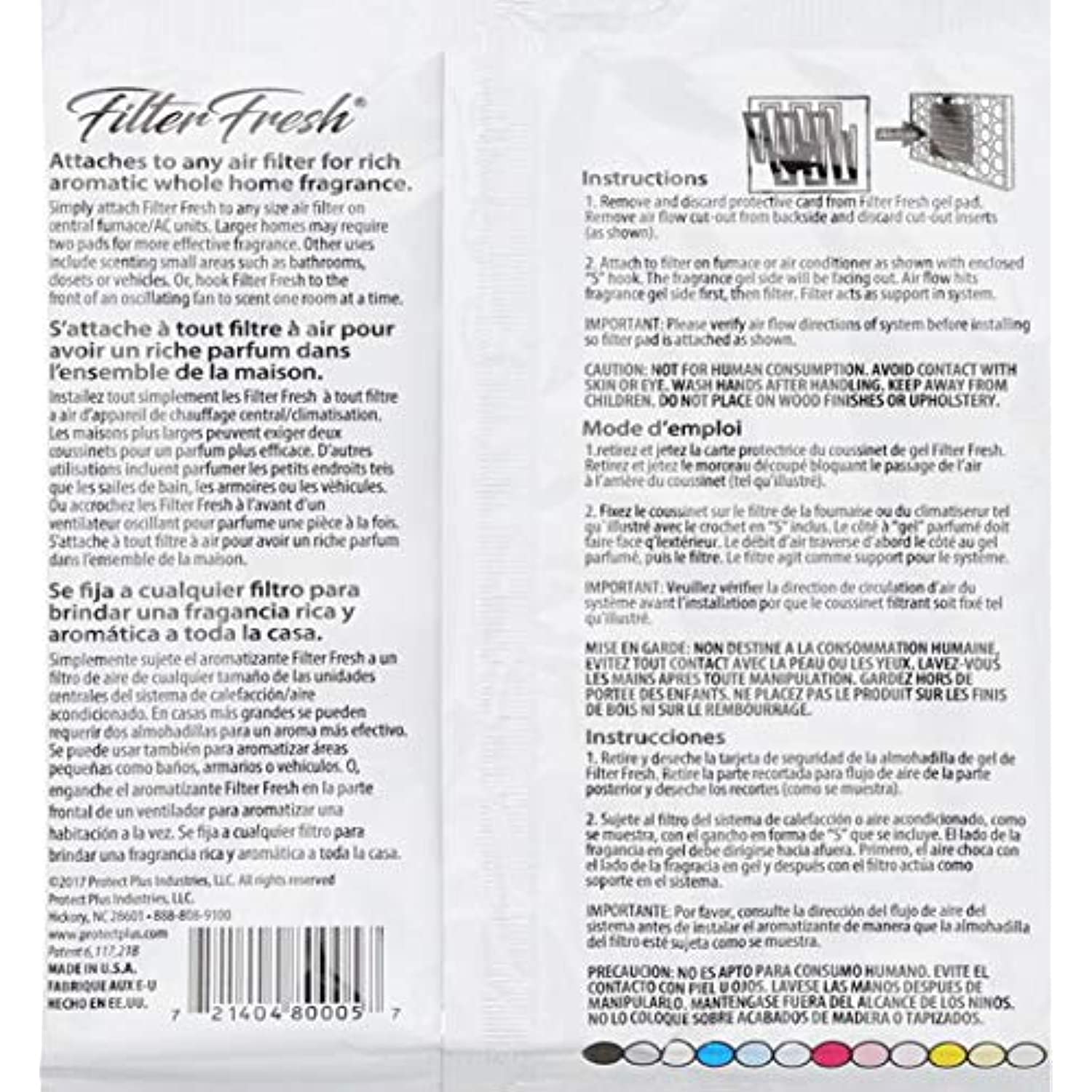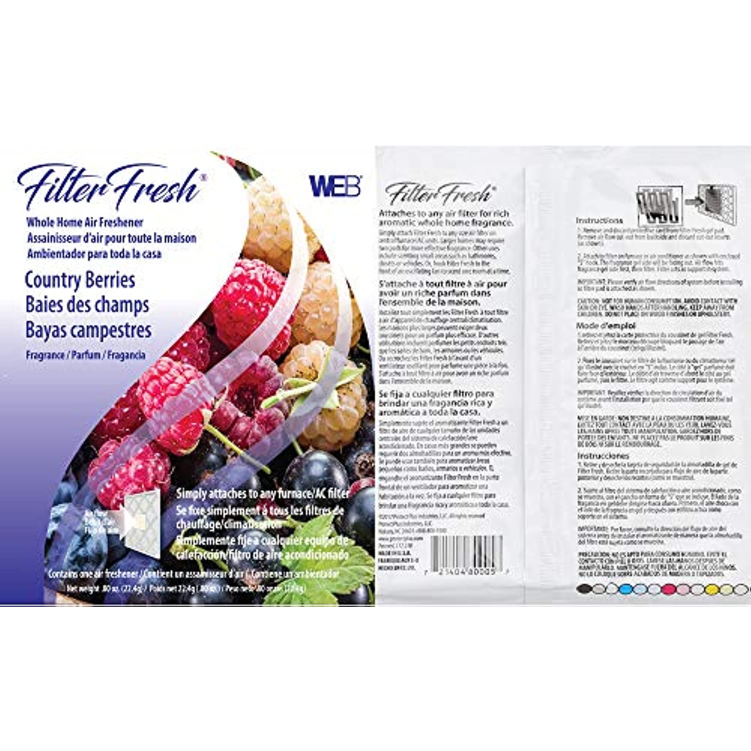 From the Manufacturer WEB FilterFresh whole home air freshener attaches to any furnace or air conditioner filter. The secret to a pleasant smelling house! As the central furnace/AC system runs a country berry scent fills your home. Great for parties, open houses, holidays and to help reduce lingering household odors like smoke, kitchen, bathroom and pet odors. Safer than candles and FilterFresh lasts longer than aerosol sprays. Scents last for days depending on the size of your home and how much the system is running.