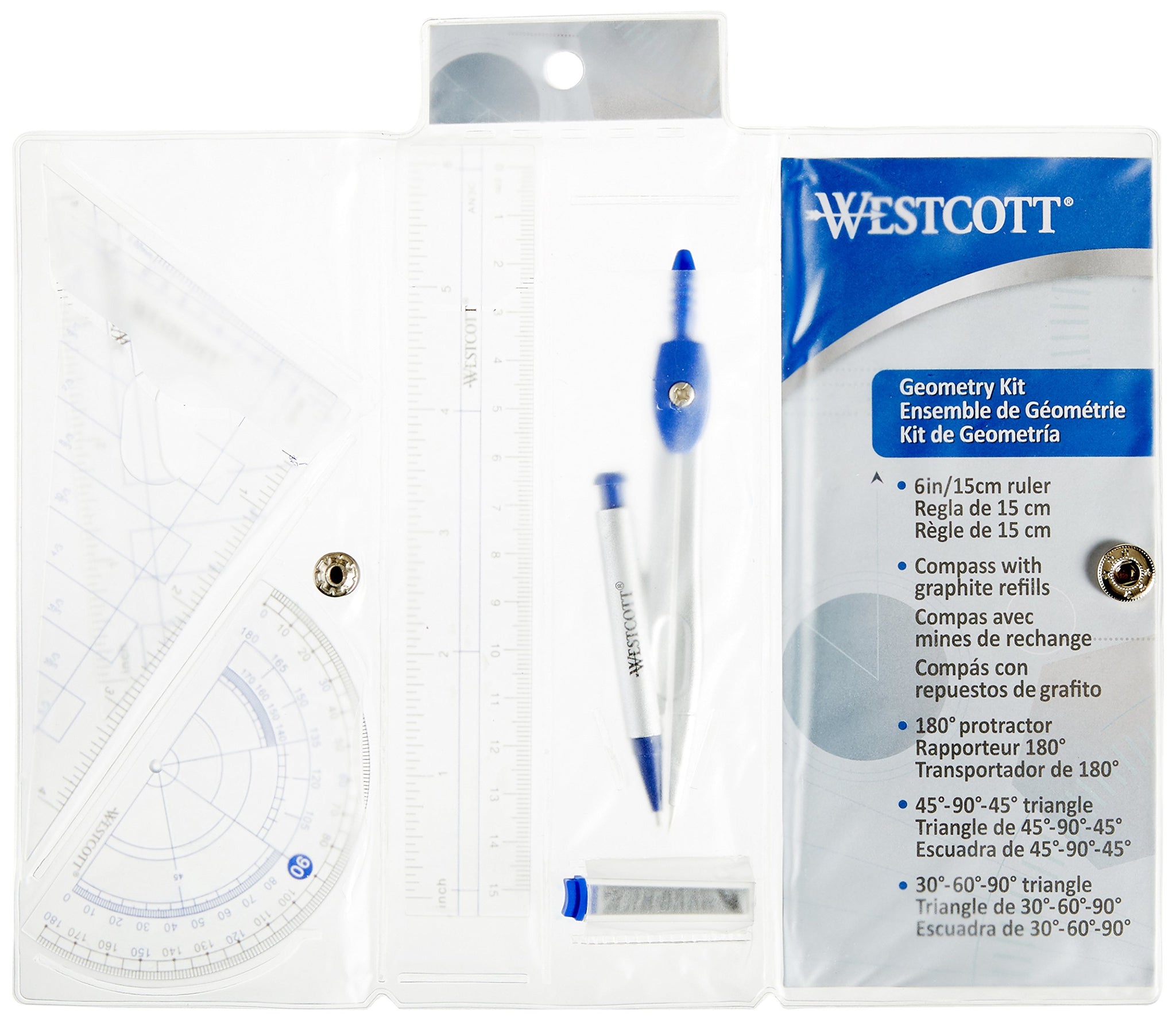 Westcott Six Piece Geometry Tool Kit with Pouch, Assorted Colors, (14564)