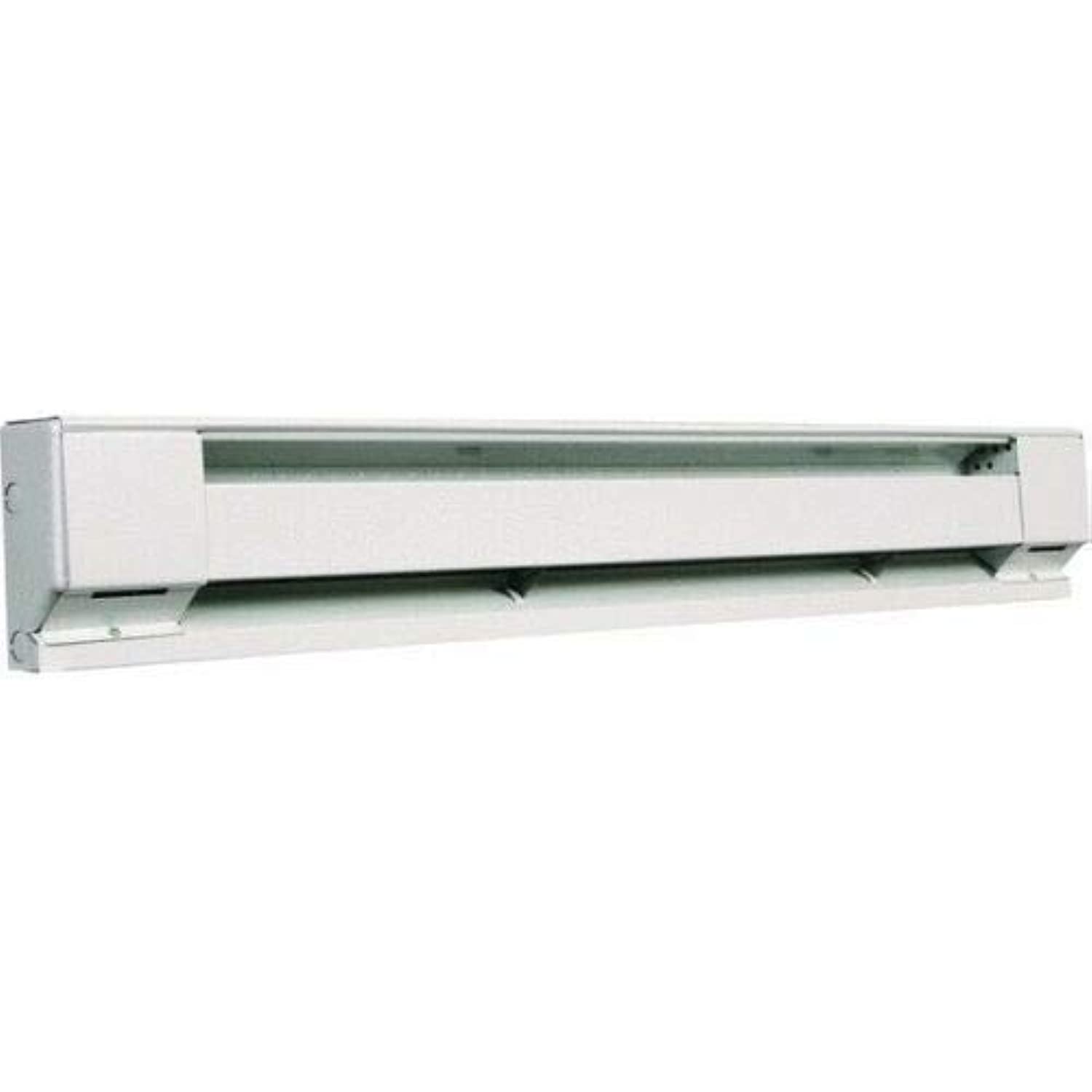 - UL listed for installation on wall at floor level with wall-to-wall carpeting. White enamel finish. Thermostat included. 5 year limited warranty.