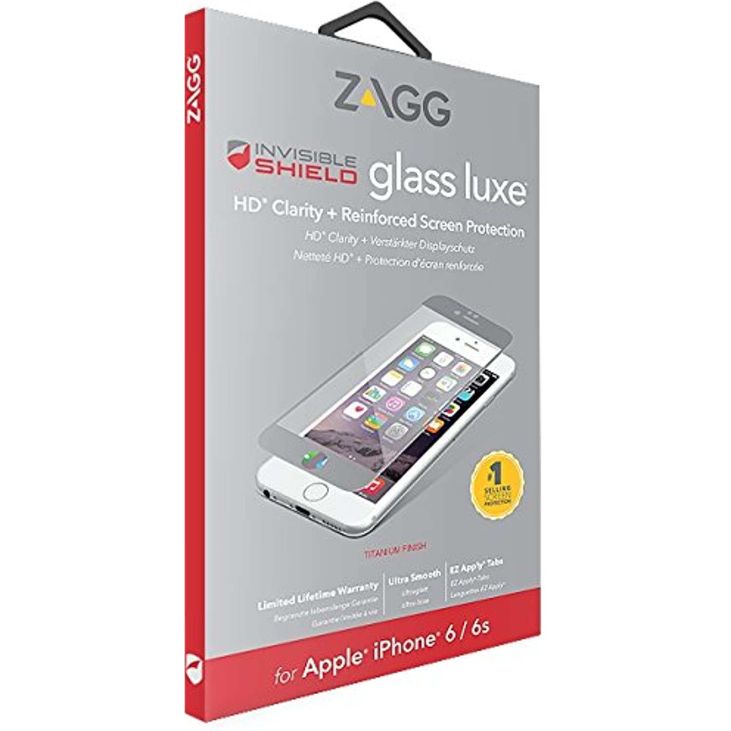 ZAGG InvisibleShield Glass Luxe Screen Protector - HD Clarity + Reinforced Protection for Apple iPhone 6 / iPhone 6S - Titanium